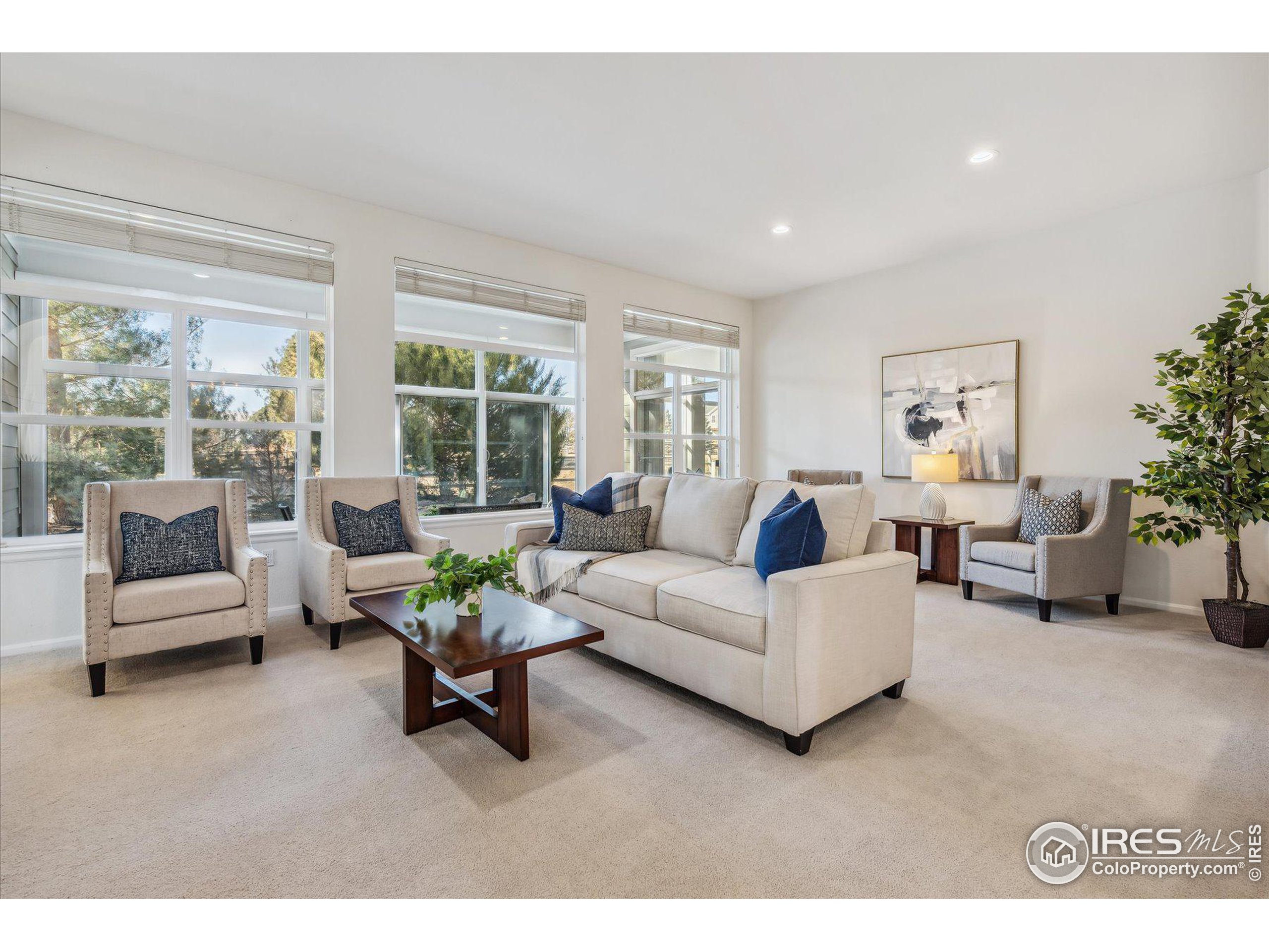 Your dreams of high ceilings, an open floor plan, and all main level living have just come true! This elegant ranch style home sits on a corner lot and backs to open space. Quiet and private with mature trees, and even thought the lot is spacious, it is all beautifully landscaped with no maintenance required. Oversized windows let in tons of light into the spacious kitchen with an island and cozy double-sided fireplace. The chef in the family will love the double ovens, loads of cabinets, and corner sink with sunny window looking to the backyard. The enclosed sunroom ensures you can enjoy the outdoors any time of year! Bring your cars and toys as there is a 3-car garage and a huge unfished basement for storage, more finished space, or a place for the kids to store all of their stuff once they've left home! Freshly painted interior, new recessed lighting, surround sound and wired for a security system. This home has been beautifully maintained and is the gem of the neighborhood! Open house Sunday, January 14th, from 12-2