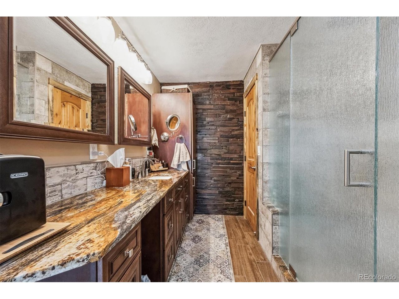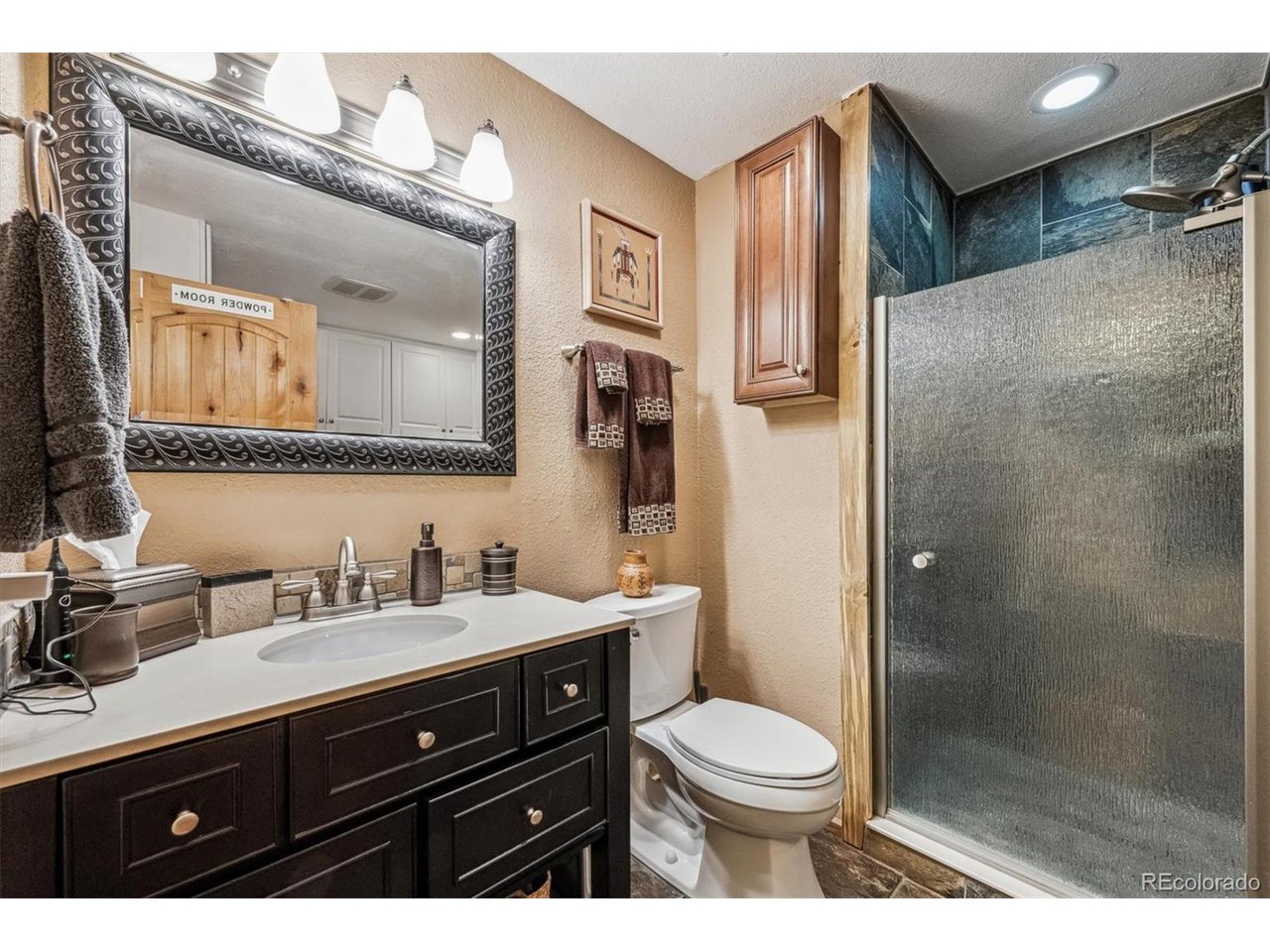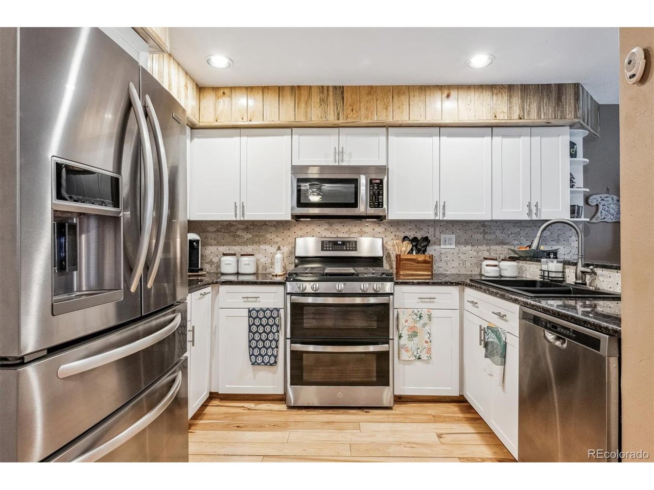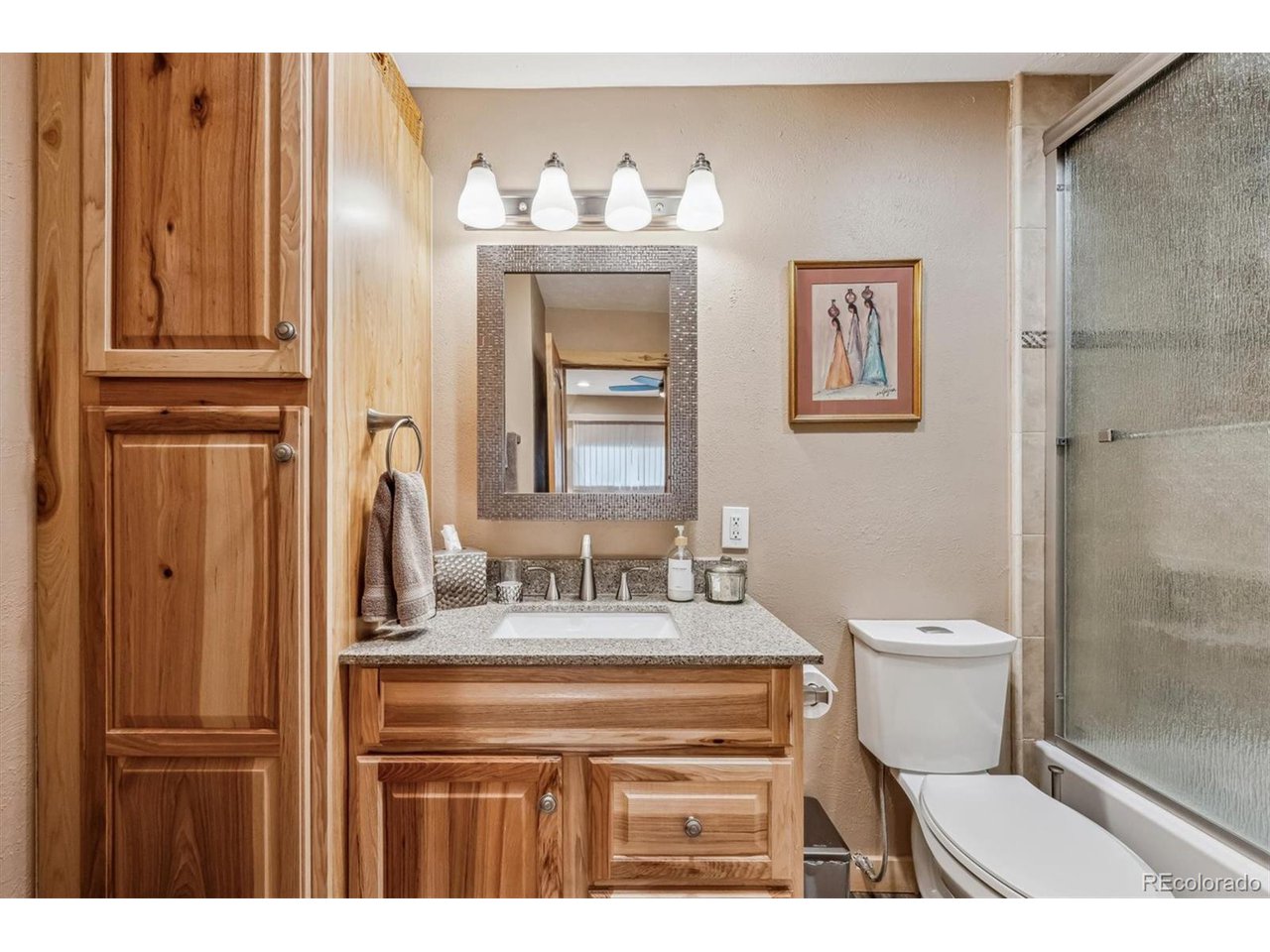 Perched atop a hill with incredible city views, this fully remodeled home in highly sought-after Amberwick backs to a peaceful greenbelt and offers a rare opportunity to own a truly turnkey home in an unbeatable location. Every surface has been upgraded and modernized, creating a space that is both stylish and functional. Step inside to discover new carpet and hickory wood floors that flow seamlessly throughout. The remodeled kitchen is a chef's dream, featuring white cabinetry, granite countertops, custom pine beetle trim, a tile backsplash, stainless steel appliances, and a gas cooktop. The primary suite is a tranquil retreat with breathtaking views, plantation shutters, a walk-in closet with custom built-ins, and a luxurious en-suite bath. The spa-like bathroom includes heated floors, a new vanity, a stunning shower with a soaking tub, and custom tile work. All bathrooms have been beautifully remodeled, including a newly added 3/4 bath in the finished walkout basement. Speaking of the walkout basement, it has been transformed into a super-cool "cabin retreat", complete with a modern LED fireplace-a perfect space for entertaining or relaxing. Additional features include a radon mitigation system, laundry cabinets, and a utility sink for added convenience. Enjoy the outdoor oasis with two expansive new trex decks, offering unmatched views of the city and surrounding landscape. Whether you're entertaining guests or enjoying a quiet sunset, these decks provide the perfect setting. Major updates include all new doors throughout, a new furnace, A/C, water heater, electrical panel, lighting, ceiling fans and a brand-new roof with gutters-giving you complete peace of mind. This home is perfectly positioned just 1/4 mile from the North Access Green Mountain Trailhead, providing instant access to hiking and biking trails. Conveniently located near downtown, Golden and major highways (6th Ave, C-470, I-70), this home offers both serenity and accessibility.