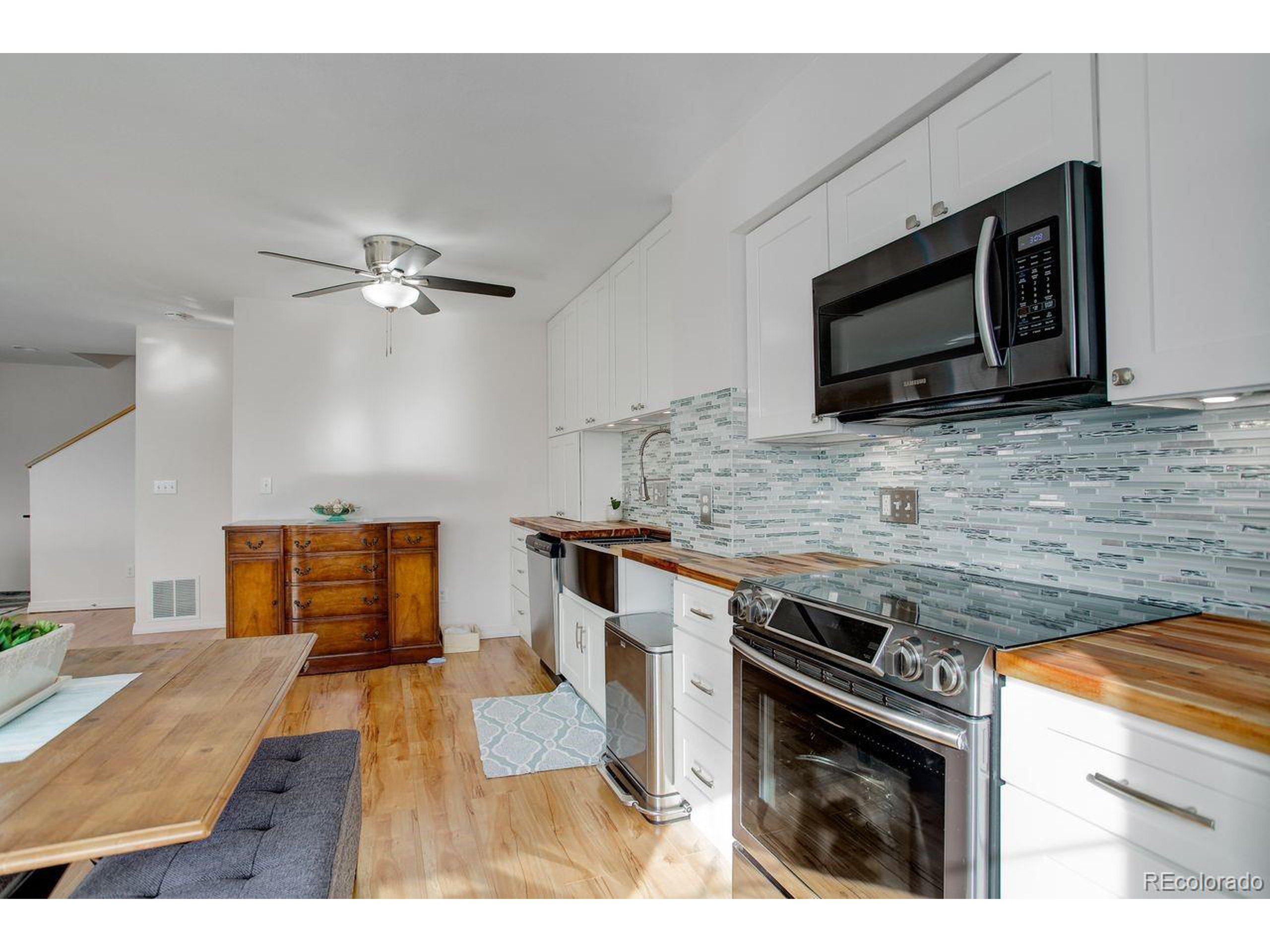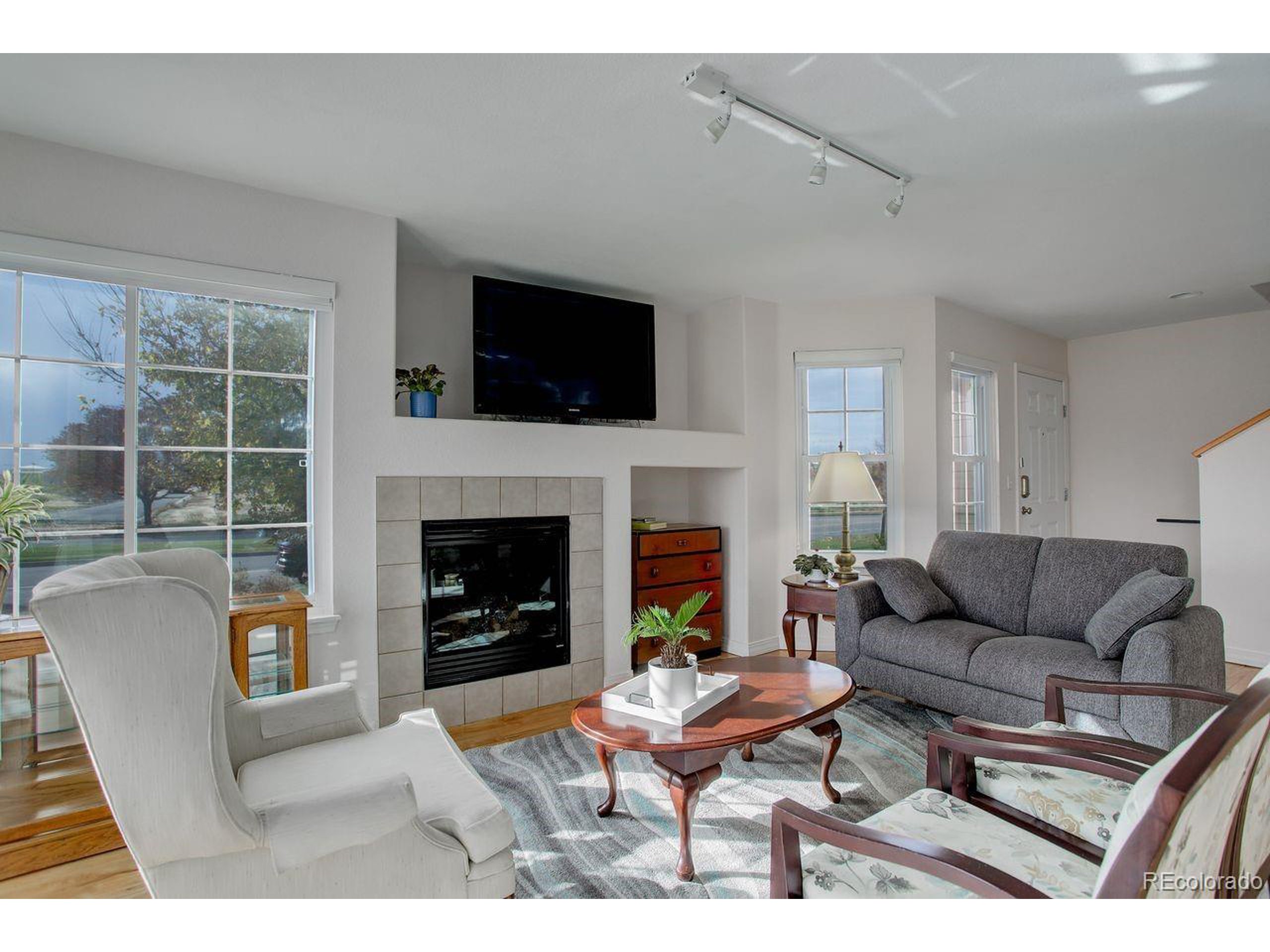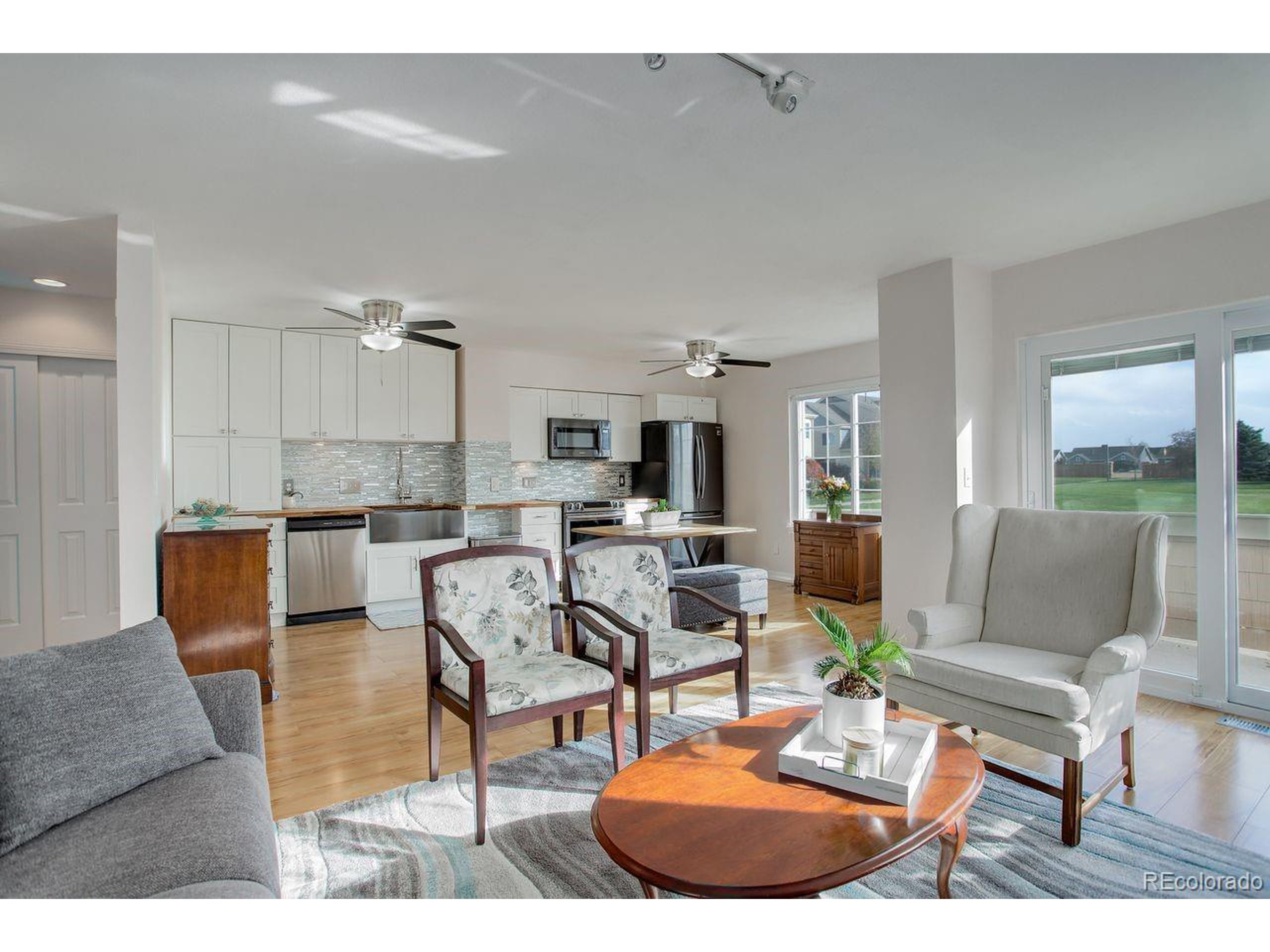 Beautifully Updated! Enjoy this open, modern kitchen with new floors, newer appliances, backsplash and white cabinets. This fantastic townhouse is open and inviting with the family room/dining room, kitchen and door to patio all connected. You will love the 9ft ceilings, cozy fireplace and abundant light. HOA open space is just outside your gate (perfect for dog owners) and the HOA park and playground is just down the street. Upper level is complete with the primary bedroom, a second bedroom with a mountain VIEW, and a loft - perfect for an office, exercise/meditation, or media room. The exterior was painted within the past 5 years. There is also a detached garage plus ample parking lot space including a spot in the HOA lot. Enjoy the Buffalo Run Golf Course across the street. Centrally located with access 76 and 470 in seconds.