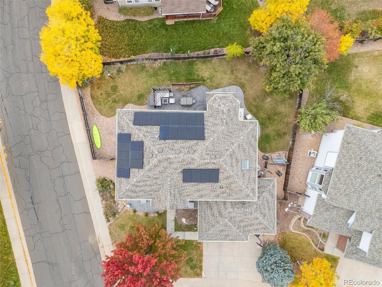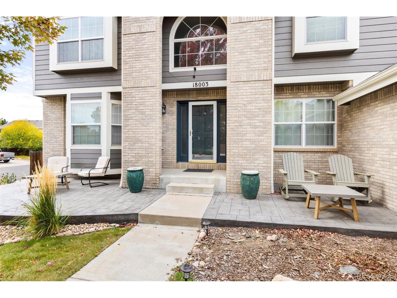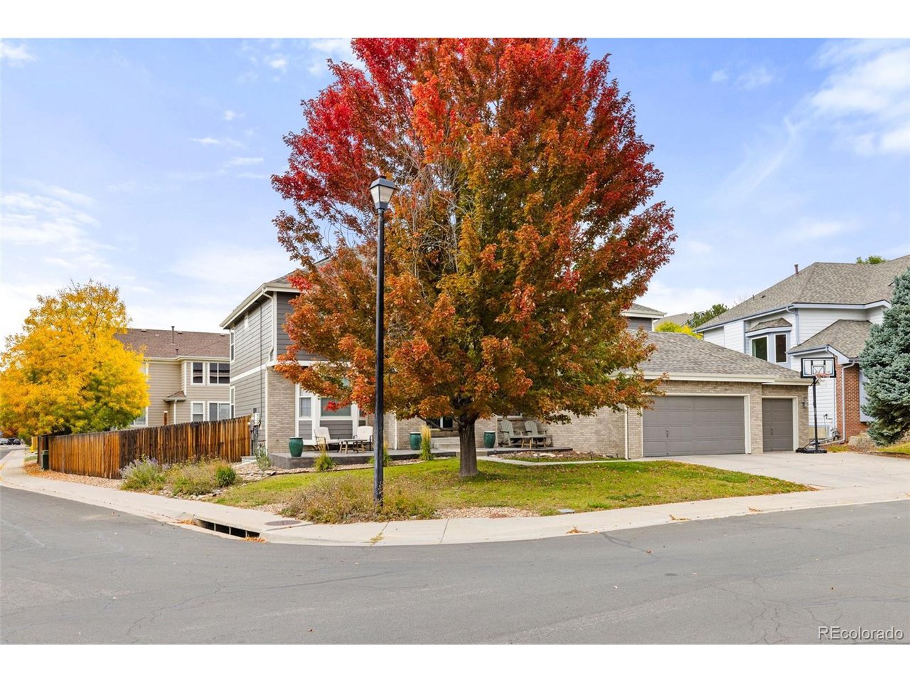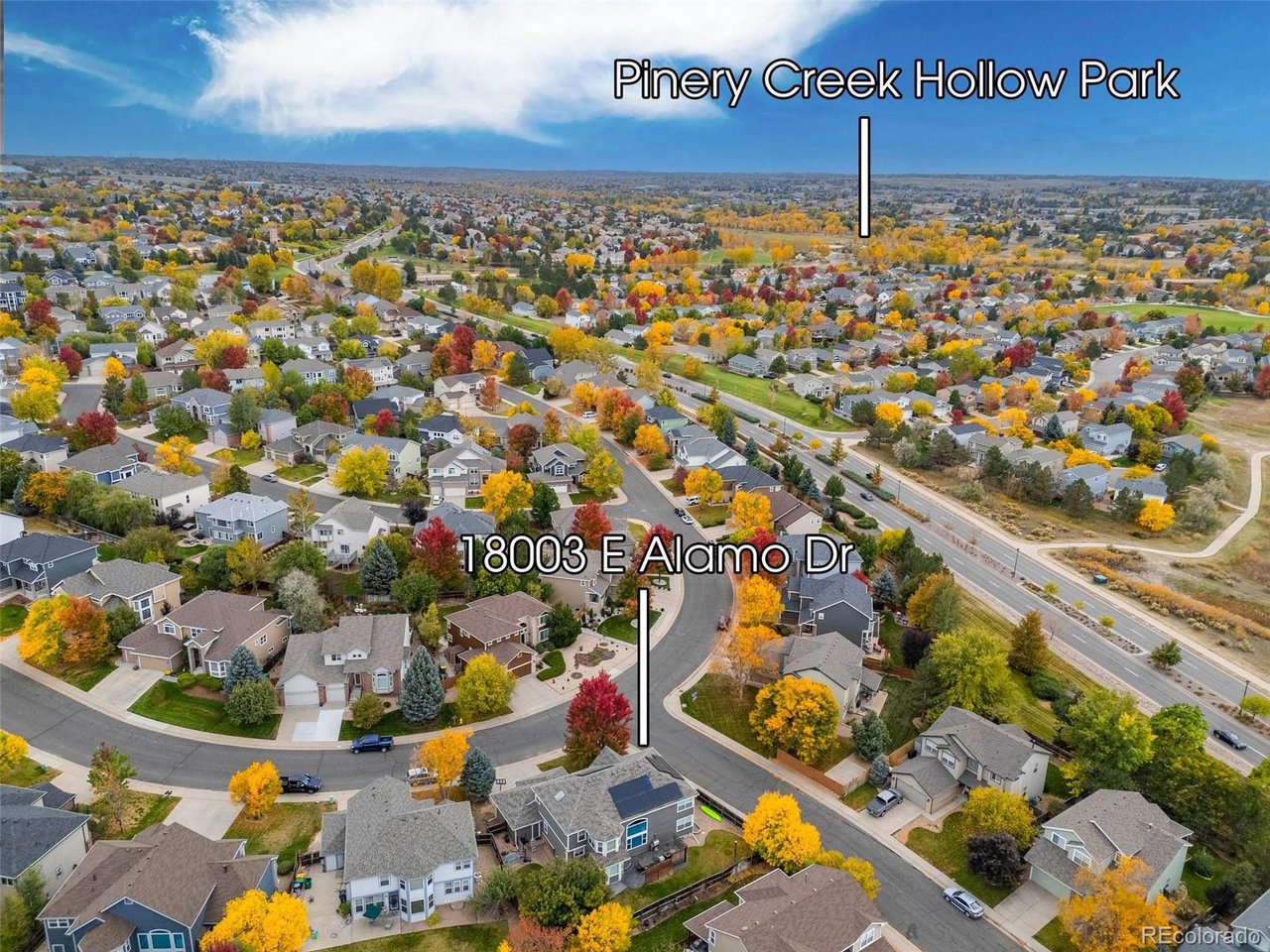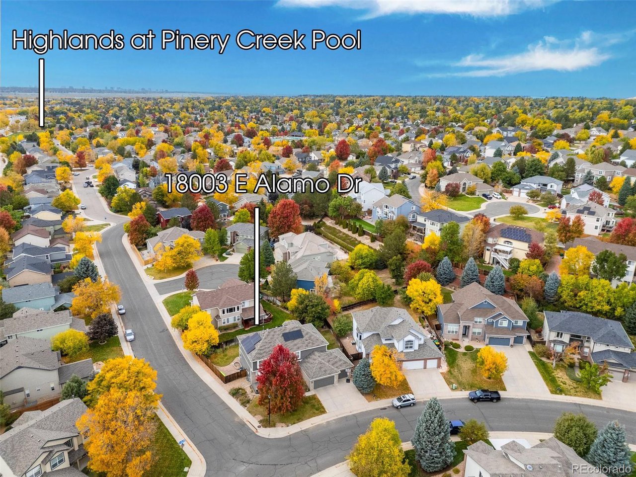 Highly desired area, located in Cherry Creek School District, this home is perfect for entertaining or simply relaxing. Corner .21 acre lot, 3 CAR OVERSIZED garage, 5 bed, 4 bath w main floor bedroom and shower. Updates throughout including brand new countertops in kitchens and baths. Hardwood floors, 2 story ceilings, shows light and bright. Neutral colors and upgraded finishes, flexible and functional floor plan. Formal dining plus eat space and open kitchen with true double ovens and gas cooktop. Family room with fireplace plus living/office/flex room. Main floor laundry and mud room. 4 additional bedrooms on the upper level including 2 with jack and jill full bath with double sinks, and 1 with ensuite 3/4 bath, plus the primary suite with sitting area and fireplace, five piece bath and walk in closet. Full unfinished basement. Brick frame exterior, NEW class IV shingle ROOF, NEW windows, NEW exterior paint, NEW extended front porch and large patio with pergola in back. Fully fenced yard, dog run and garden area. Exterior access door from garage. 2024 furnace and central air conditioning, plus whole house attic fan! Solar panels owned free and clear! Mature trees and an excellent community close to shopping, dining, recreation and more. Within minutes of Trails Recreation Center, the library, NEIGHBORHOOD POOL and parks. So much close by... Southlands Mall, Cherry Creek State Park, and all the schools... Grandview, Falcon Creek and Trails West. Some extras... SMART thermostat, video doorbell and security system included, TING FIBER internet.