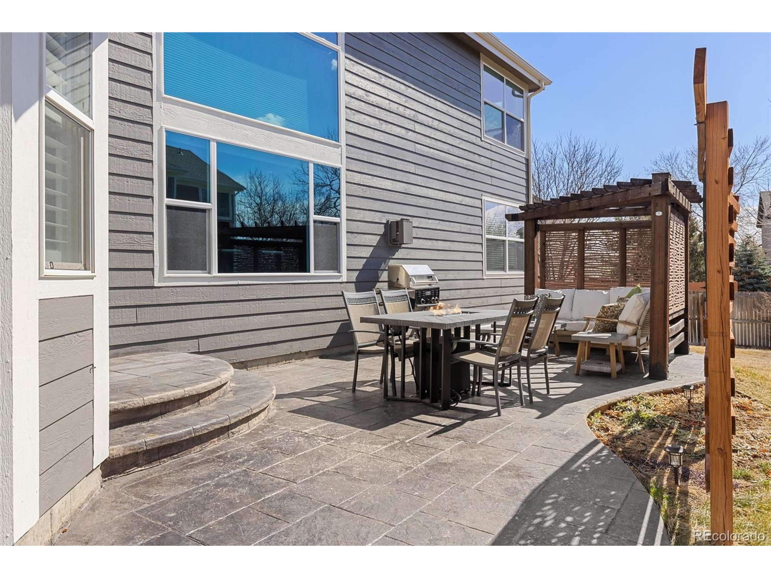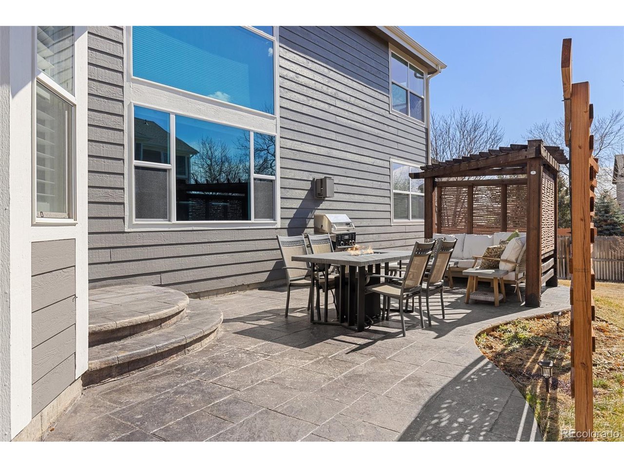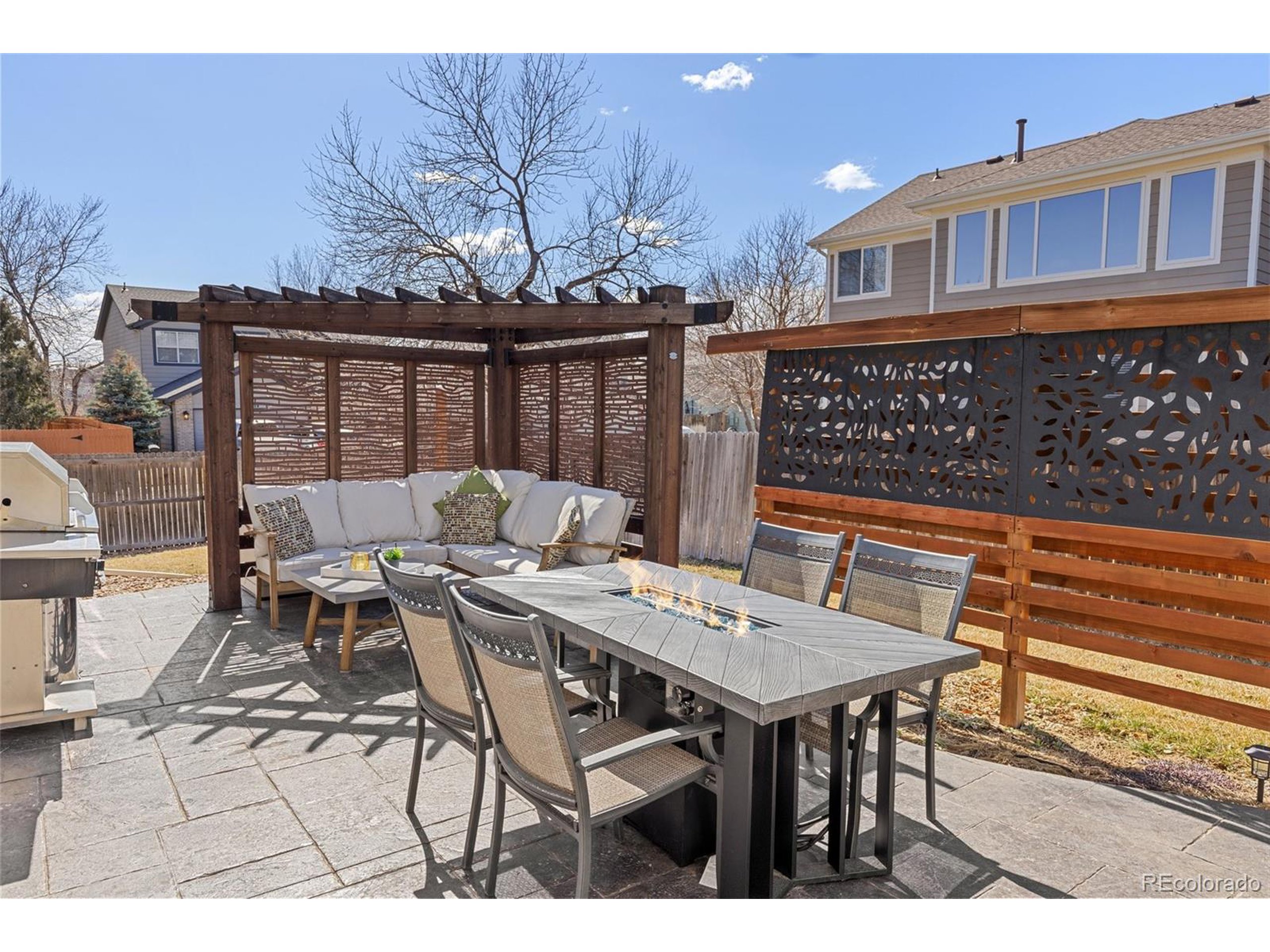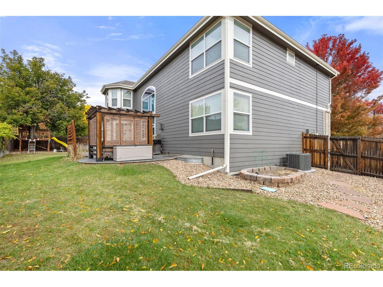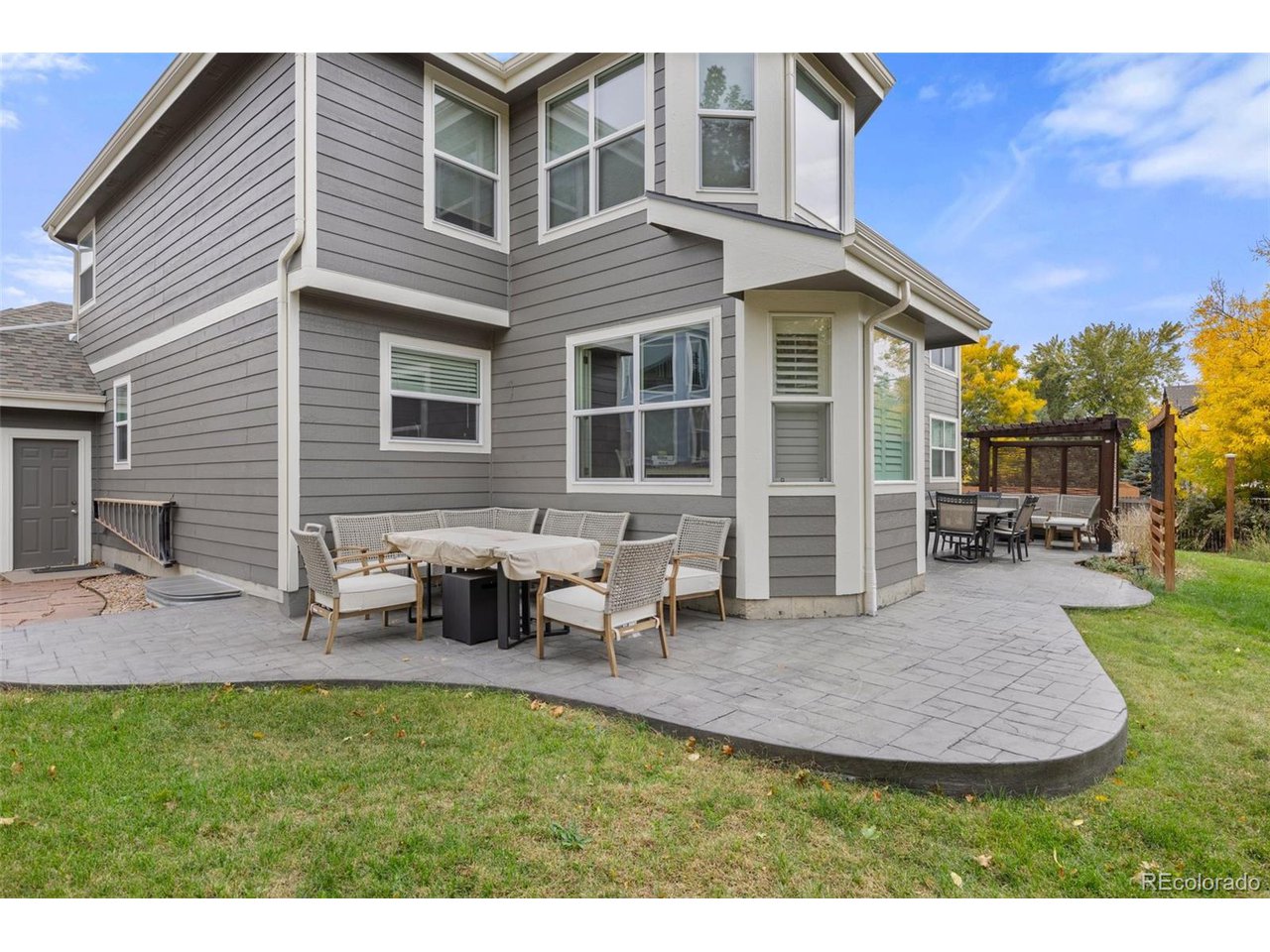 Highly desired area, located in Cherry Creek School District, this home is perfect for entertaining or simply relaxing. Corner .21 acre lot, 3 CAR OVERSIZED garage, 5 bed, 4 bath w main floor bedroom and shower. Updates throughout including brand new countertops in kitchens and baths. Hardwood floors, 2 story ceilings, shows light and bright. Neutral colors and upgraded finishes, flexible and functional floor plan. Formal dining plus eat space and open kitchen with true double ovens and gas cooktop. Family room with fireplace plus living/office/flex room. Main floor laundry and mud room. 4 additional bedrooms on the upper level including 2 with jack and jill full bath with double sinks, and 1 with ensuite 3/4 bath, plus the primary suite with sitting area and fireplace, five piece bath and walk in closet. Full unfinished basement. Brick frame exterior, NEW class IV shingle ROOF, NEW windows, NEW exterior paint, NEW extended front porch and large patio with pergola in back. Fully fenced yard, dog run and garden area. Exterior access door from garage. 2024 furnace and central air conditioning, plus whole house attic fan! Solar panels owned free and clear! Mature trees and an excellent community close to shopping, dining, recreation and more. Within minutes of Trails Recreation Center, the library, NEIGHBORHOOD POOL and parks. So much close by... Southlands Mall, Cherry Creek State Park, and all the schools... Grandview, Falcon Creek and Trails West. Some extras... SMART thermostat, video doorbell and security system included, TING FIBER internet.