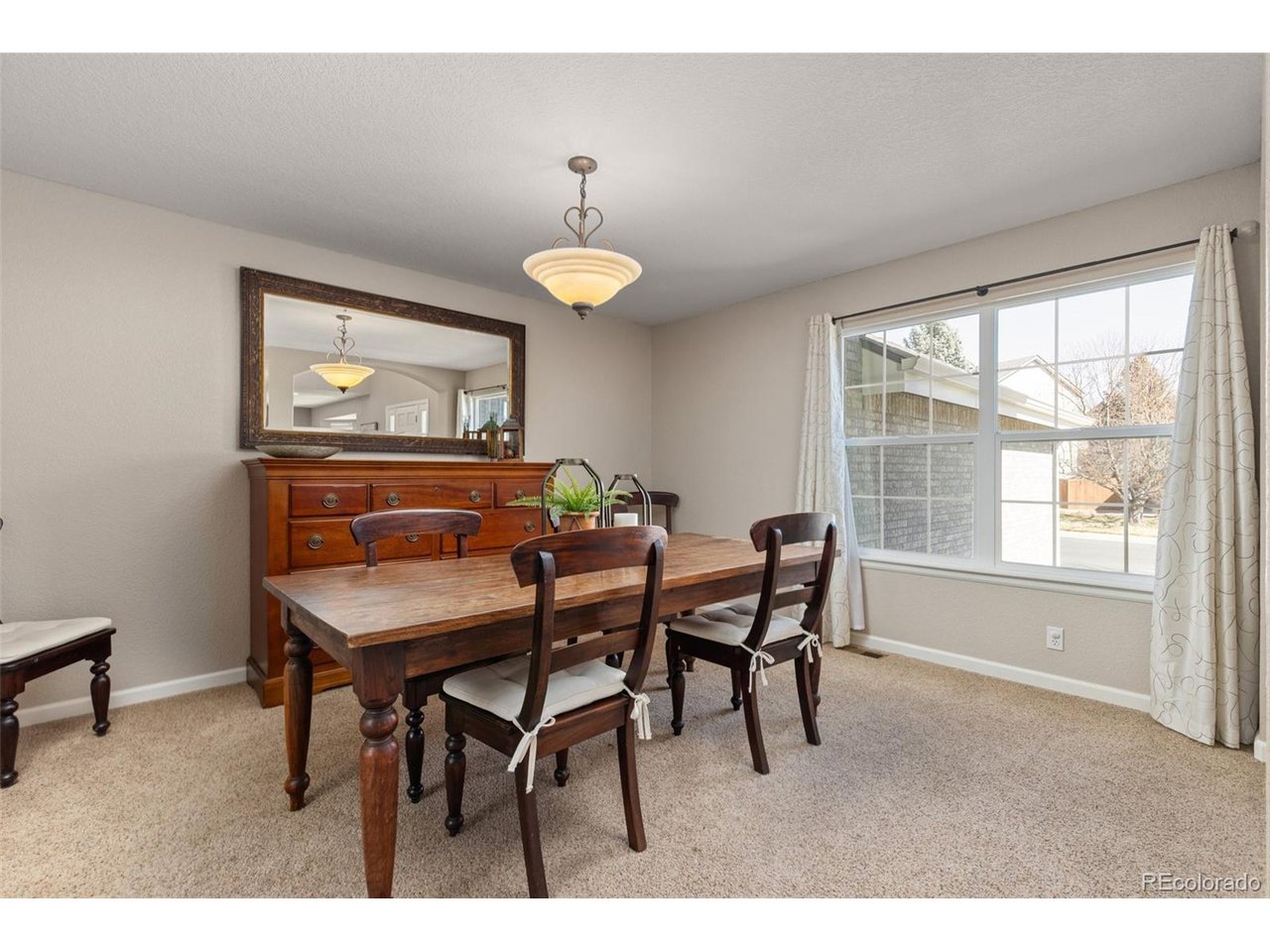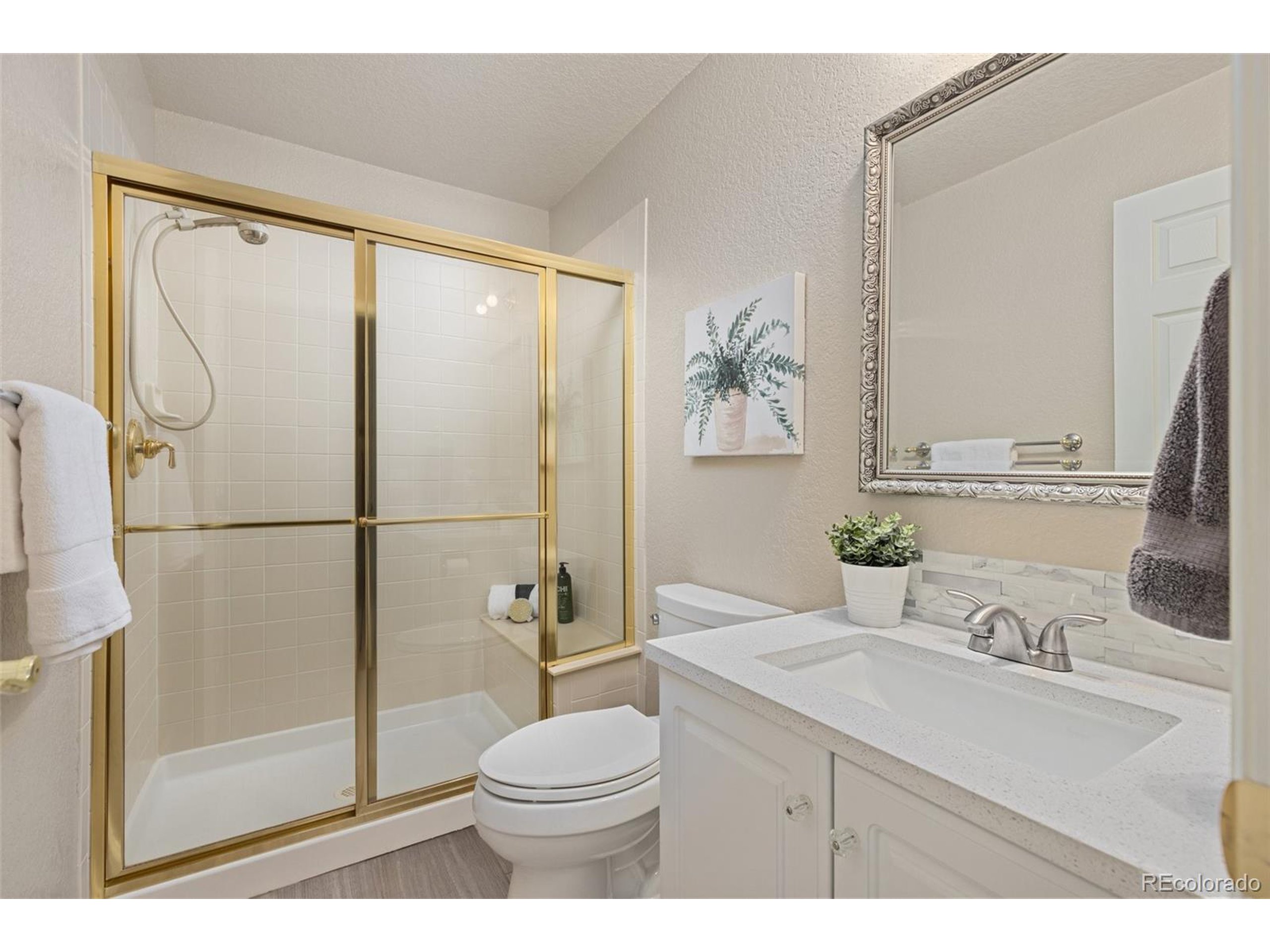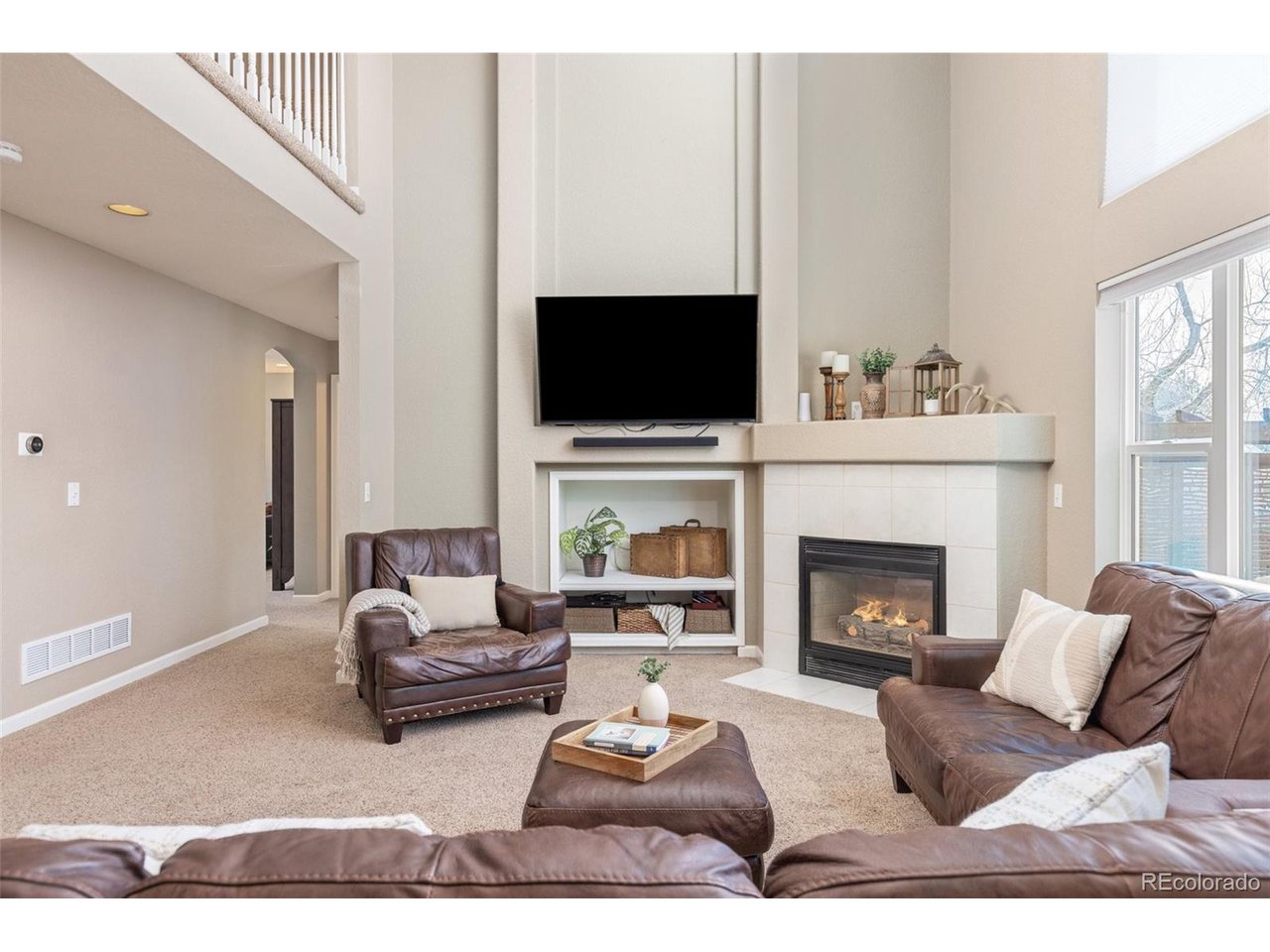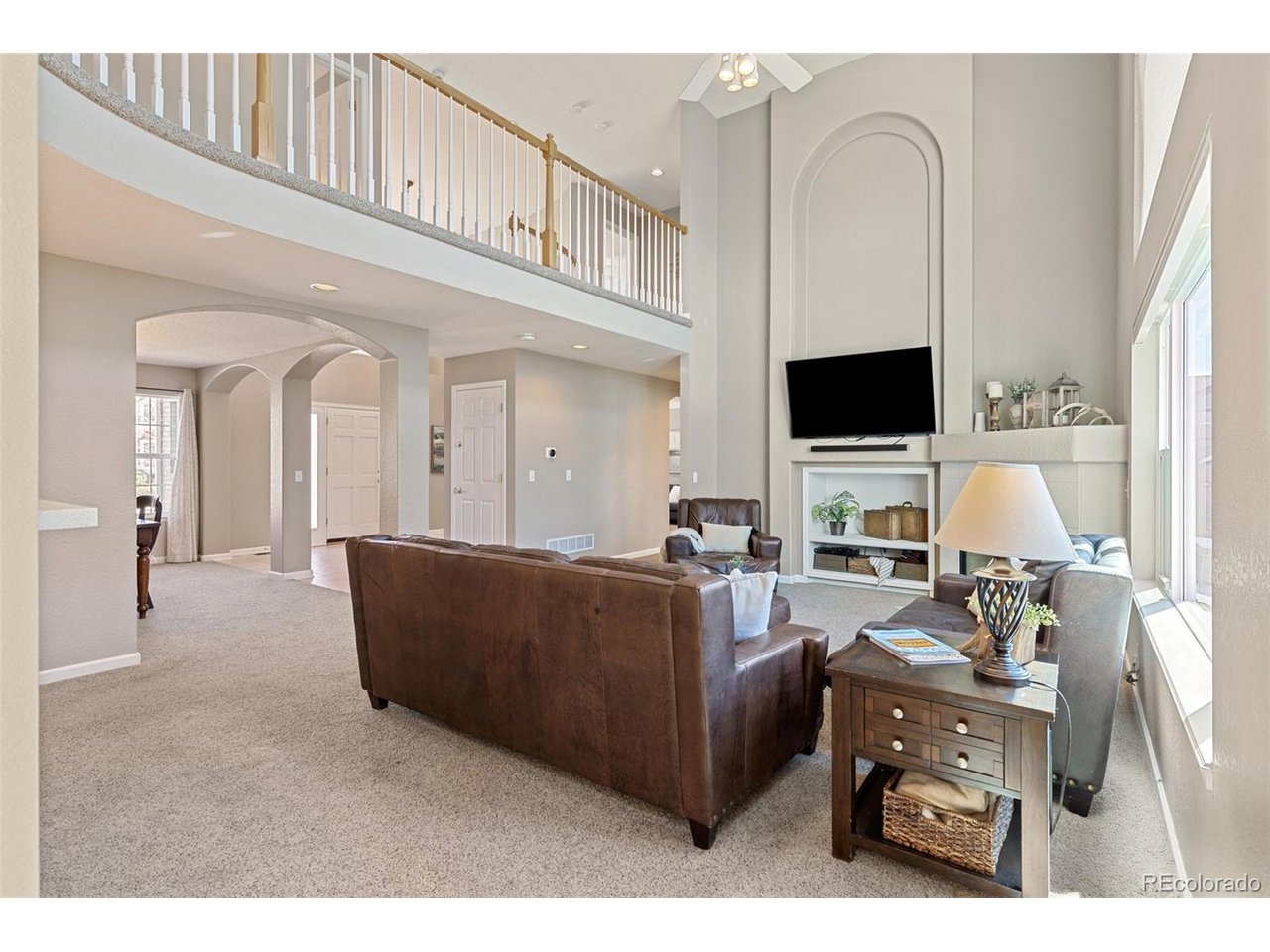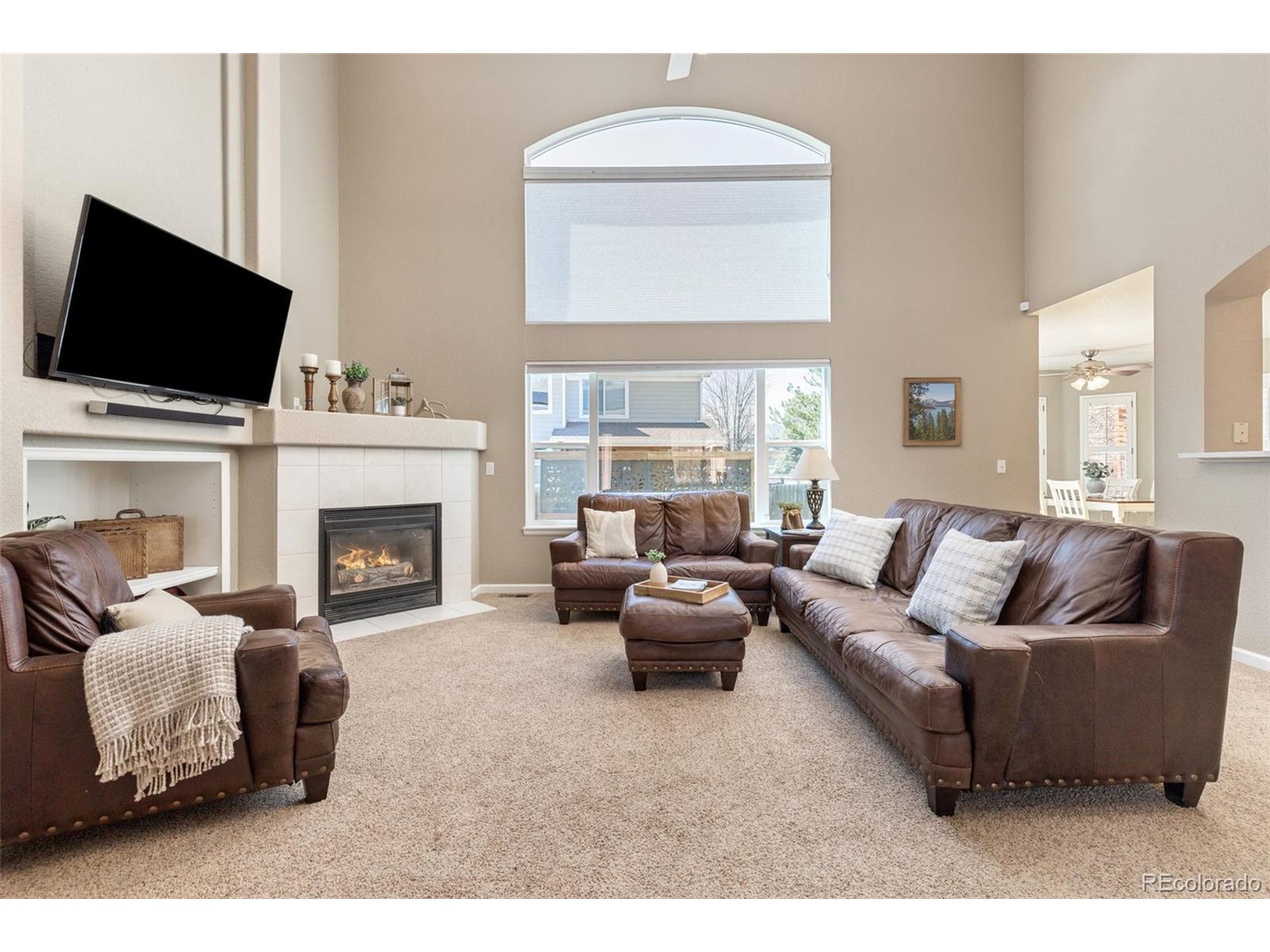 Highly desired area, located in Cherry Creek School District, this home is perfect for entertaining or simply relaxing. Corner .21 acre lot, 3 CAR OVERSIZED garage, 5 bed, 4 bath w main floor bedroom and shower. Updates throughout including brand new countertops in kitchens and baths. Hardwood floors, 2 story ceilings, shows light and bright. Neutral colors and upgraded finishes, flexible and functional floor plan. Formal dining plus eat space and open kitchen with true double ovens and gas cooktop. Family room with fireplace plus living/office/flex room. Main floor laundry and mud room. 4 additional bedrooms on the upper level including 2 with jack and jill full bath with double sinks, and 1 with ensuite 3/4 bath, plus the primary suite with sitting area and fireplace, five piece bath and walk in closet. Full unfinished basement. Brick frame exterior, NEW class IV shingle ROOF, NEW windows, NEW exterior paint, NEW extended front porch and large patio with pergola in back. Fully fenced yard, dog run and garden area. Exterior access door from garage. 2024 furnace and central air conditioning, plus whole house attic fan! Solar panels owned free and clear! Mature trees and an excellent community close to shopping, dining, recreation and more. Within minutes of Trails Recreation Center, the library, NEIGHBORHOOD POOL and parks. So much close by... Southlands Mall, Cherry Creek State Park, and all the schools... Grandview, Falcon Creek and Trails West. Some extras... SMART thermostat, video doorbell and security system included, TING FIBER internet.