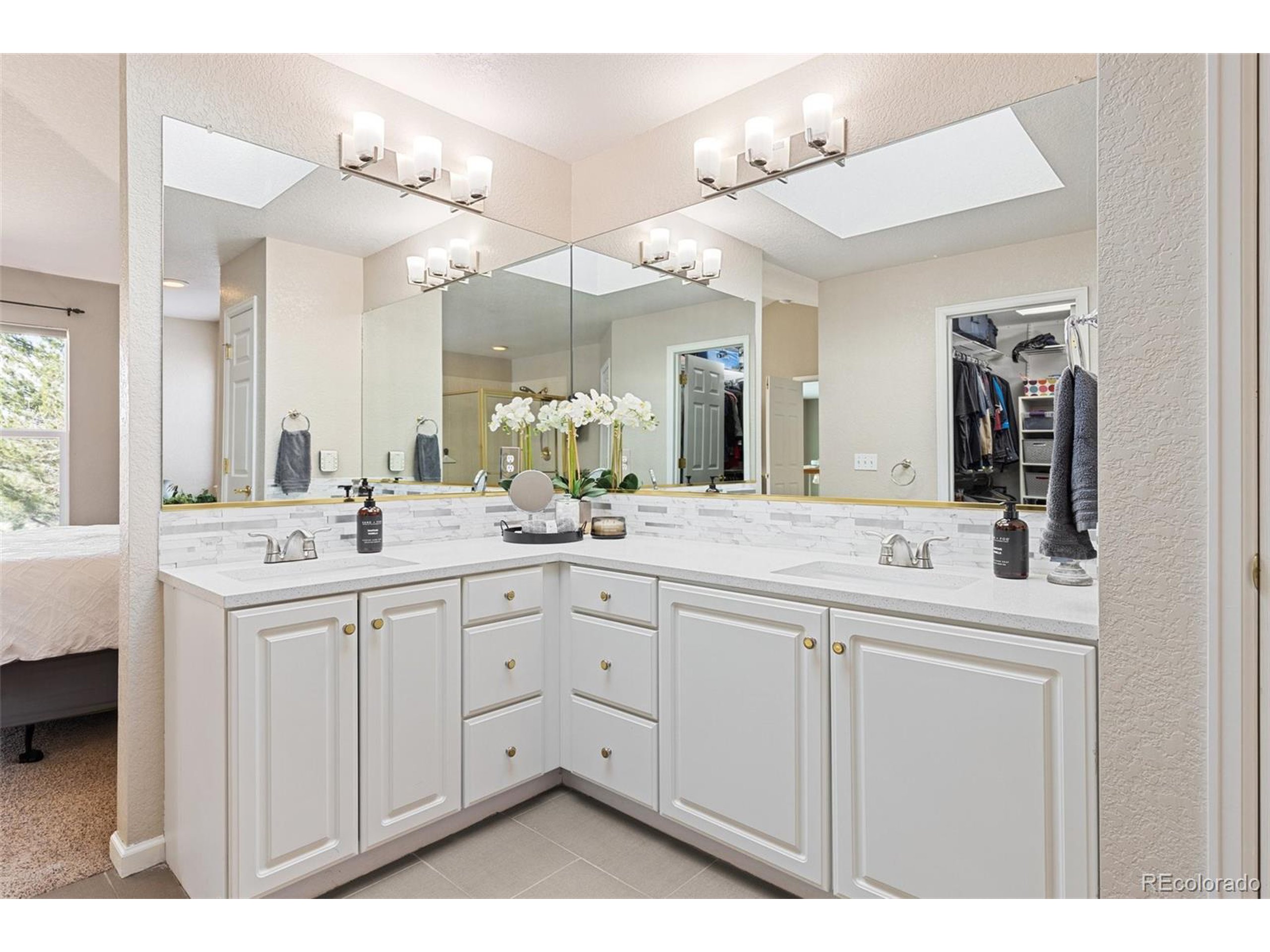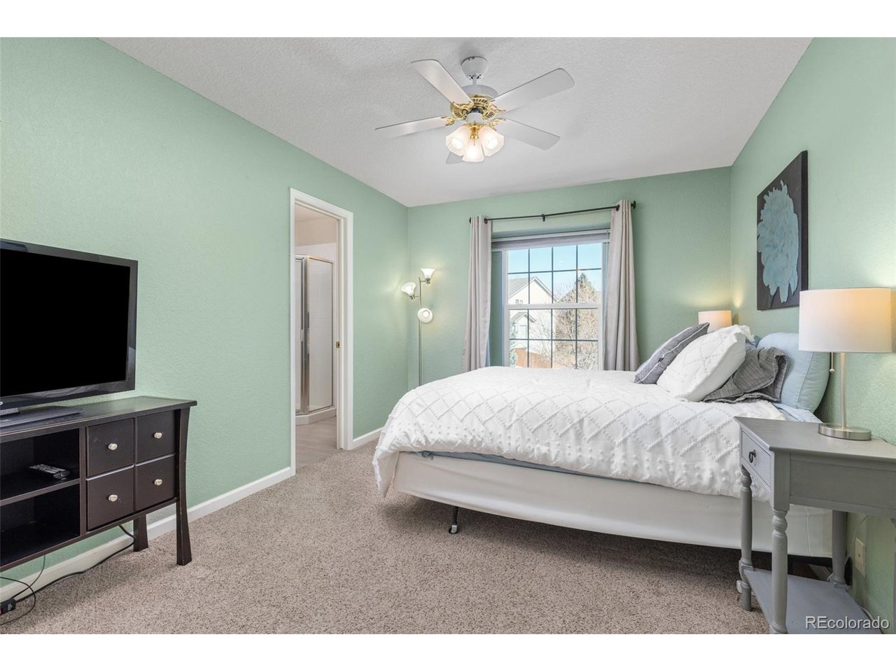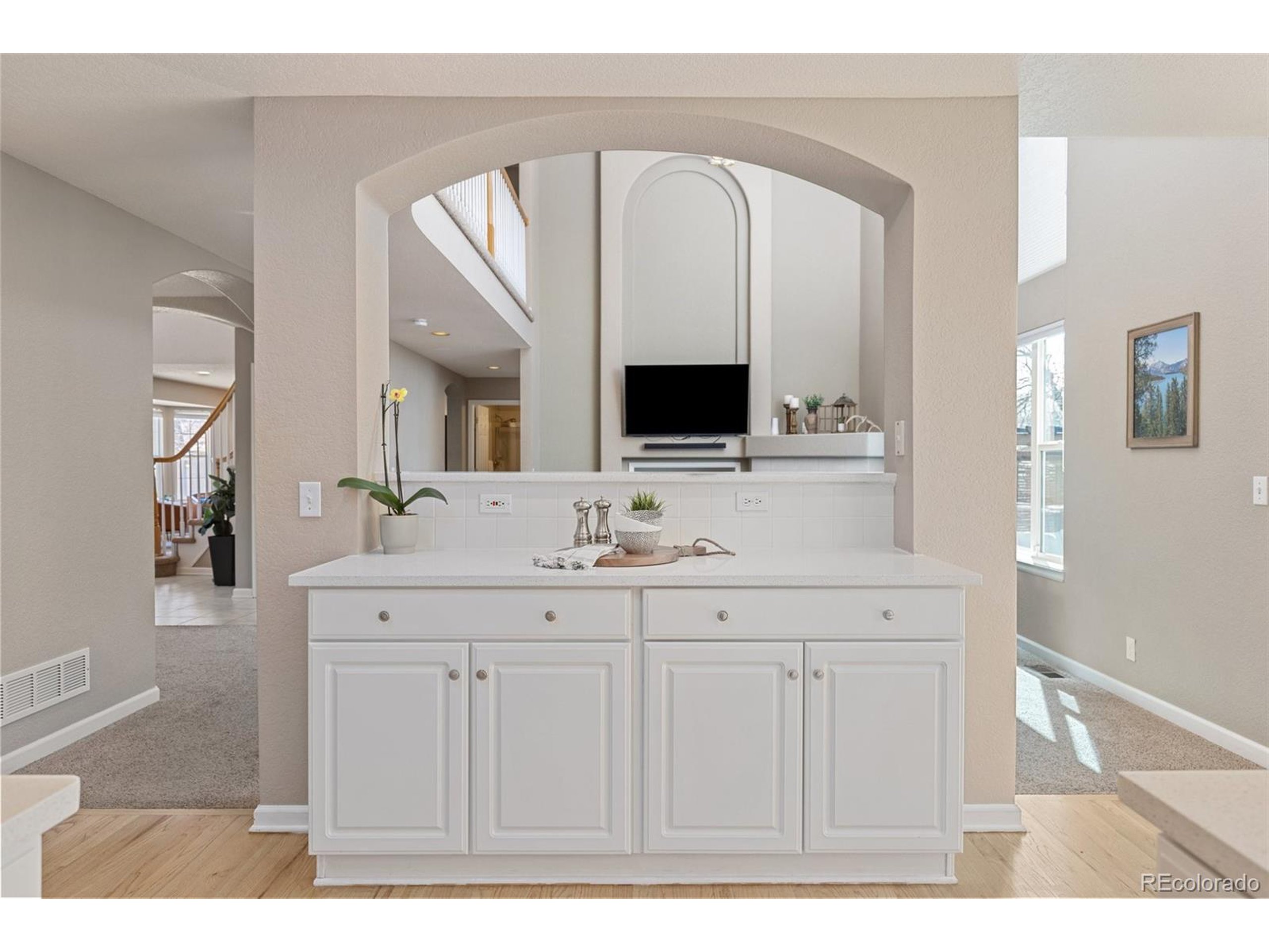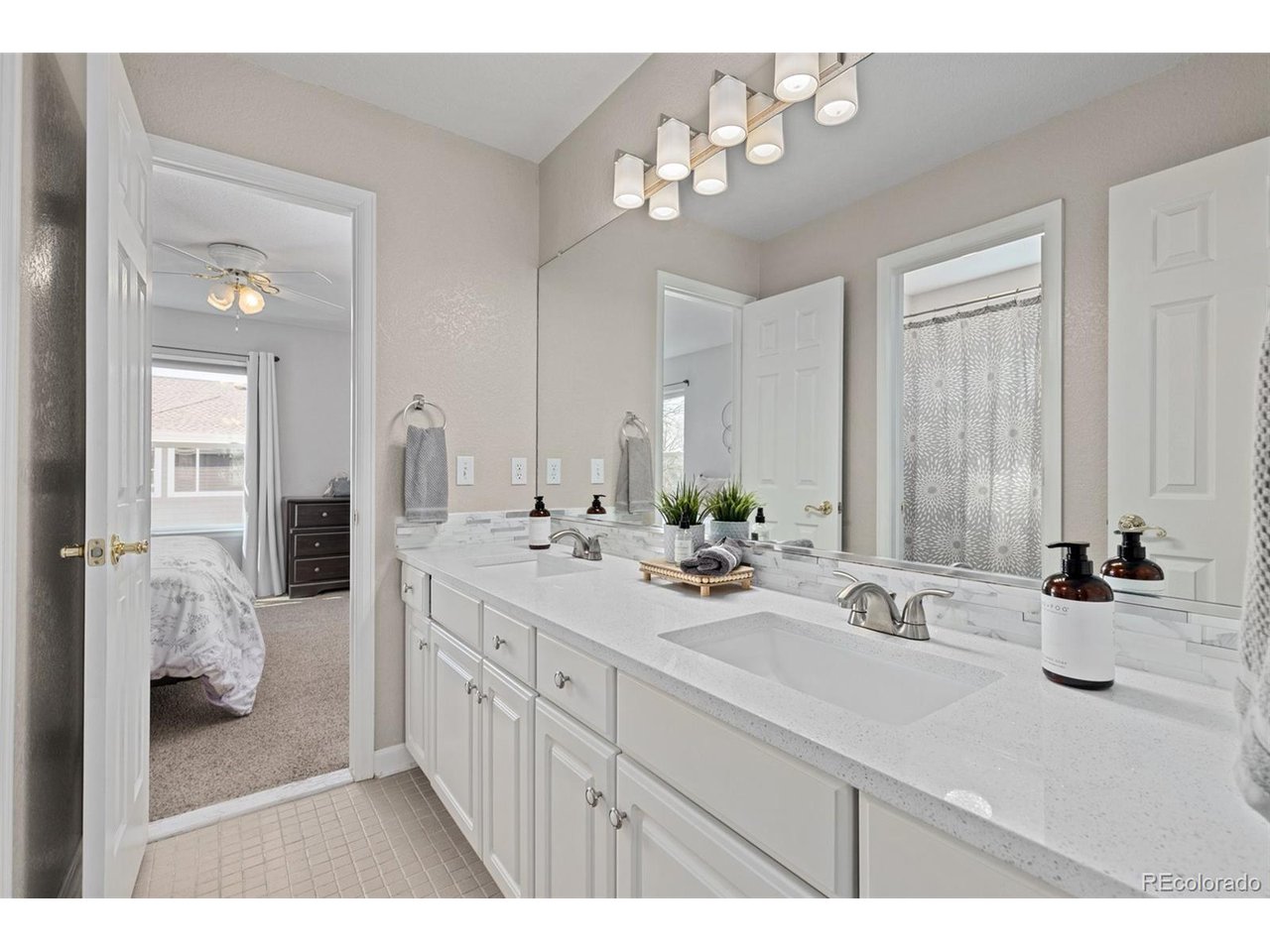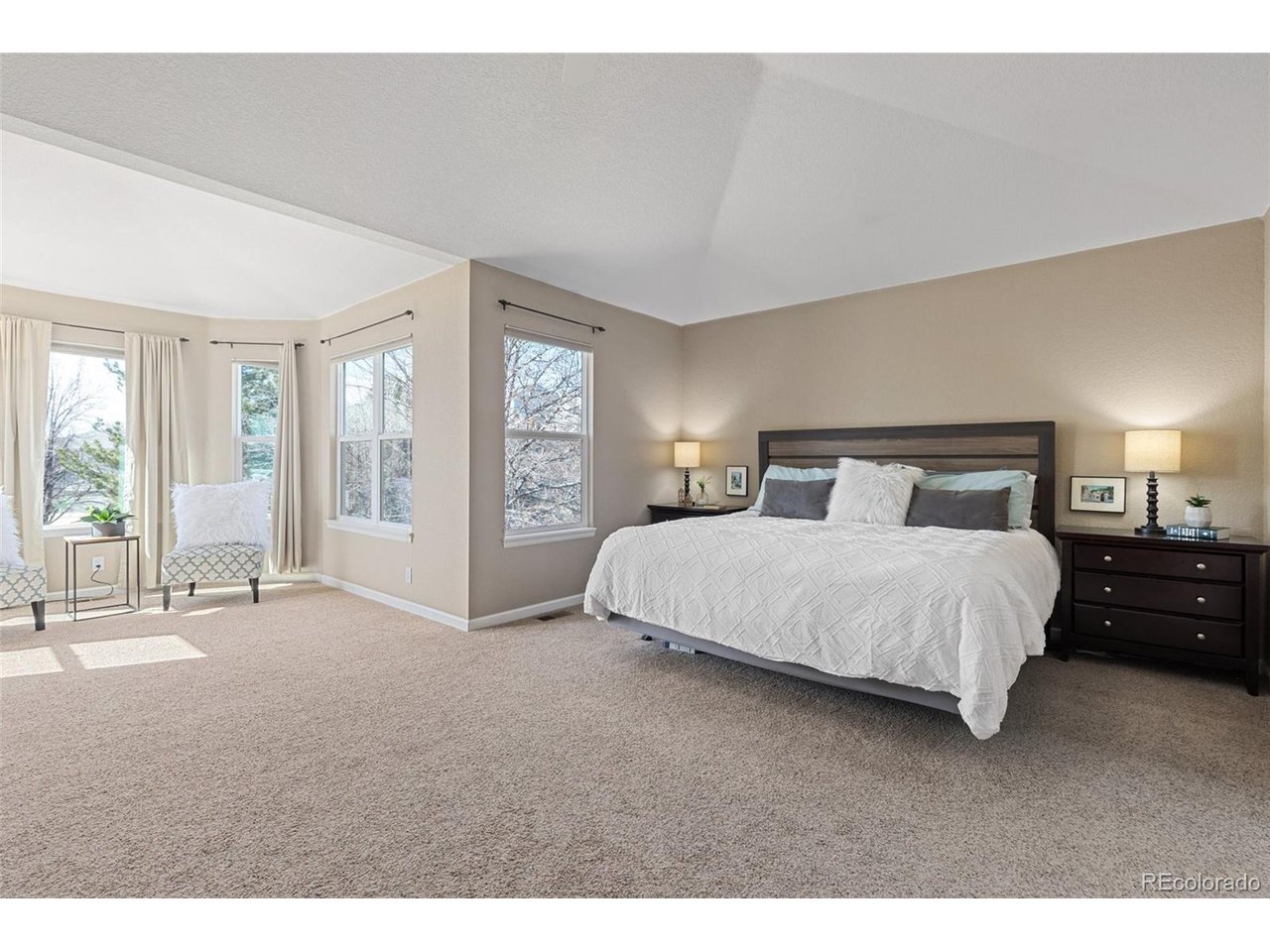 Highly desired area, located in Cherry Creek School District, this home is perfect for entertaining or simply relaxing. Corner .21 acre lot, 3 CAR OVERSIZED garage, 5 bed, 4 bath w main floor bedroom and shower. Updates throughout including brand new countertops in kitchens and baths. Hardwood floors, 2 story ceilings, shows light and bright. Neutral colors and upgraded finishes, flexible and functional floor plan. Formal dining plus eat space and open kitchen with true double ovens and gas cooktop. Family room with fireplace plus living/office/flex room. Main floor laundry and mud room. 4 additional bedrooms on the upper level including 2 with jack and jill full bath with double sinks, and 1 with ensuite 3/4 bath, plus the primary suite with sitting area and fireplace, five piece bath and walk in closet. Full unfinished basement. Brick frame exterior, NEW class IV shingle ROOF, NEW windows, NEW exterior paint, NEW extended front porch and large patio with pergola in back. Fully fenced yard, dog run and garden area. Exterior access door from garage. 2024 furnace and central air conditioning, plus whole house attic fan! Solar panels owned free and clear! Mature trees and an excellent community close to shopping, dining, recreation and more. Within minutes of Trails Recreation Center, the library, NEIGHBORHOOD POOL and parks. So much close by... Southlands Mall, Cherry Creek State Park, and all the schools... Grandview, Falcon Creek and Trails West. Some extras... SMART thermostat, video doorbell and security system included, TING FIBER internet.