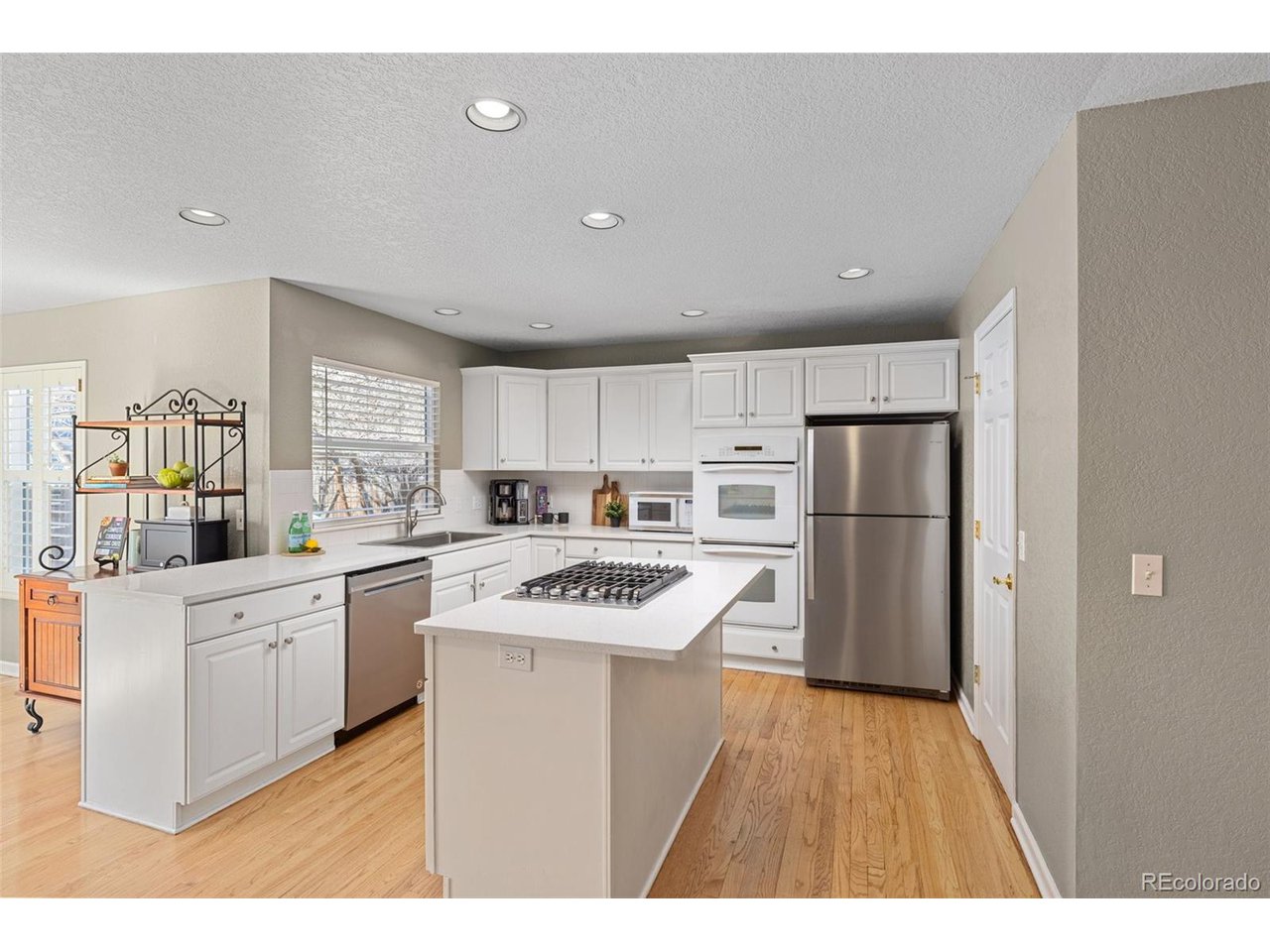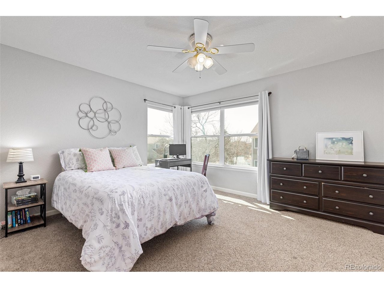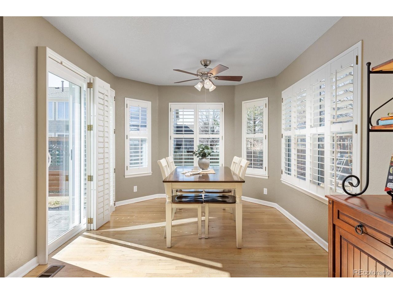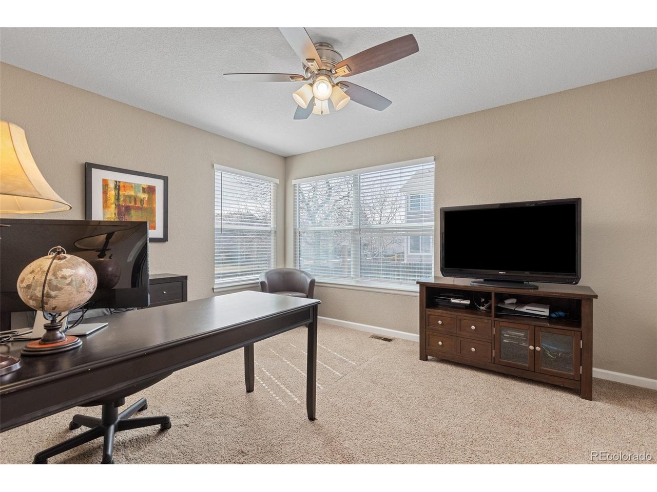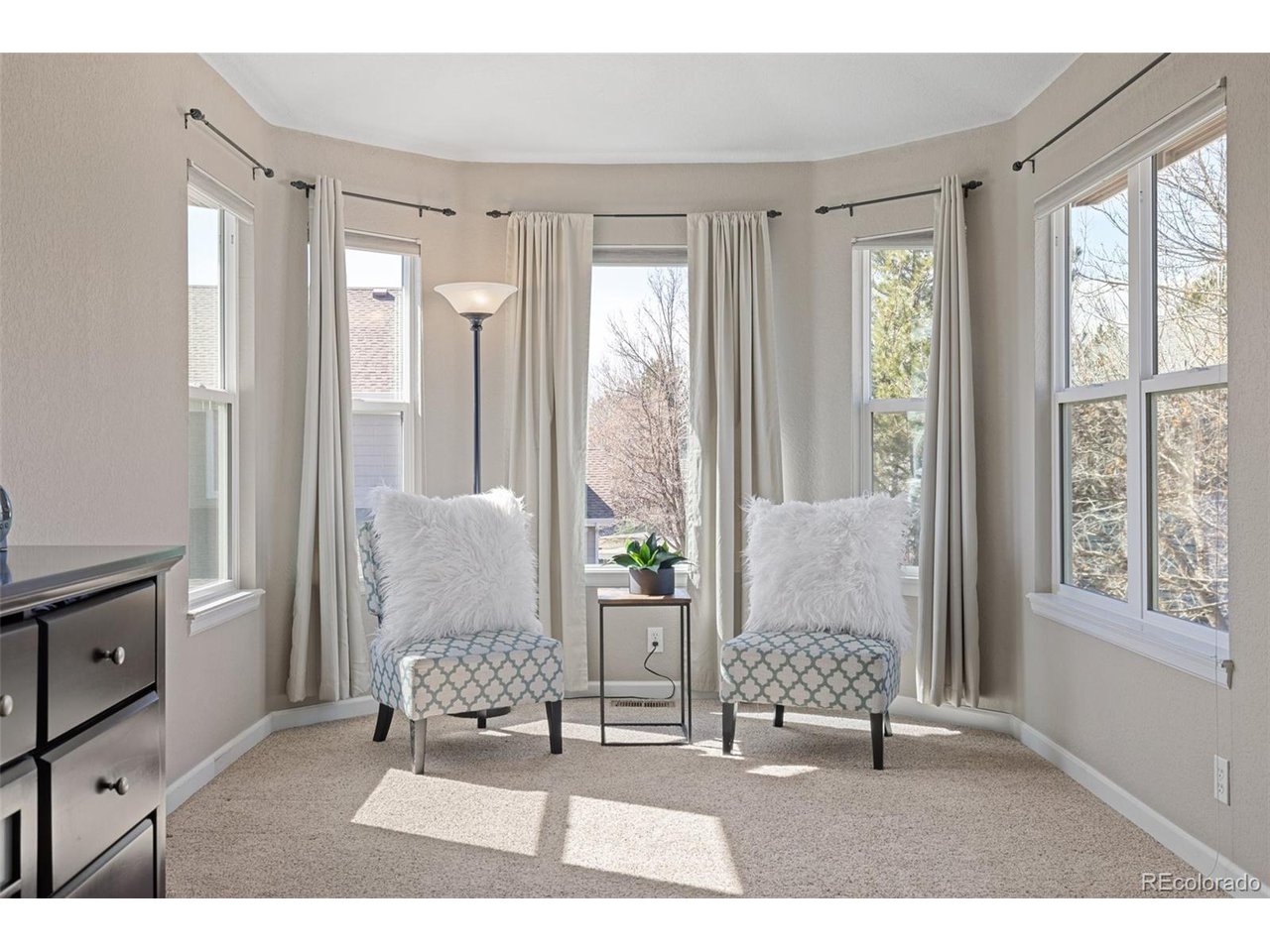 Highly desired area, located in Cherry Creek School District, this home is perfect for entertaining or simply relaxing. Corner .21 acre lot, 3 CAR OVERSIZED garage, 5 bed, 4 bath w main floor bedroom and shower. Updates throughout including brand new countertops in kitchens and baths. Hardwood floors, 2 story ceilings, shows light and bright. Neutral colors and upgraded finishes, flexible and functional floor plan. Formal dining plus eat space and open kitchen with true double ovens and gas cooktop. Family room with fireplace plus living/office/flex room. Main floor laundry and mud room. 4 additional bedrooms on the upper level including 2 with jack and jill full bath with double sinks, and 1 with ensuite 3/4 bath, plus the primary suite with sitting area and fireplace, five piece bath and walk in closet. Full unfinished basement. Brick frame exterior, NEW class IV shingle ROOF, NEW windows, NEW exterior paint, NEW extended front porch and large patio with pergola in back. Fully fenced yard, dog run and garden area. Exterior access door from garage. 2024 furnace and central air conditioning, plus whole house attic fan! Solar panels owned free and clear! Mature trees and an excellent community close to shopping, dining, recreation and more. Within minutes of Trails Recreation Center, the library, NEIGHBORHOOD POOL and parks. So much close by... Southlands Mall, Cherry Creek State Park, and all the schools... Grandview, Falcon Creek and Trails West. Some extras... SMART thermostat, video doorbell and security system included, TING FIBER internet.