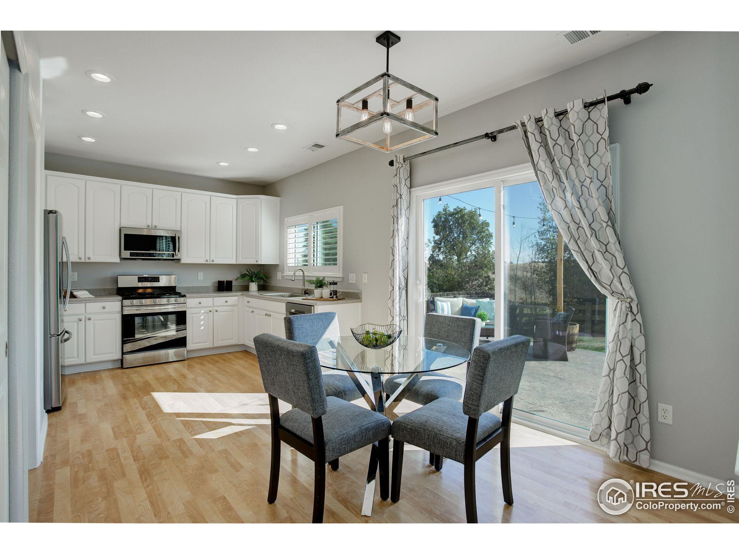 Lock & Leave Home on Open Space! Nestled against the tranquil Coyote Ridge Open Space, this beautifully cared-for 3-bedroom, 3-bath home offers peek-a-boo mountain views from the bedrooms and direct trail access just steps from your front door. Step outside and enjoy your newly renovated patio, featuring elegant stamped concrete and a cozy gas firepit, ideal for entertaining or unwinding after a long day. Inside, the home has been thoughtfully updated with brand-new windows with a 10-year transferable warranty. The kitchen is equipped with sleek newer stainless steel appliances, while luxury vinyl plank (LVP) flooring brings a modern touch to the upstairs living spaces. Relax in your living room, with a newly installed gas fireplace! This home is energy-efficient as well, thanks to the installation of solar panels, which not only lower energy costs but also contribute to sustainability. The 2 Car garage includes a 220Voutlet to charge your electric car & built-in storage racks, adding practical functionality to the home. Located within walking distance to a pool, skate park, play structures & Eldorado K-8, this home combines convenience and natural beauty in a highly desirable location. Minutes to grocery stores, all your shopping needs at Flatirons Crossing Mall, and only a 10-minute drive to downtown Boulder. Schedule a showing today!
