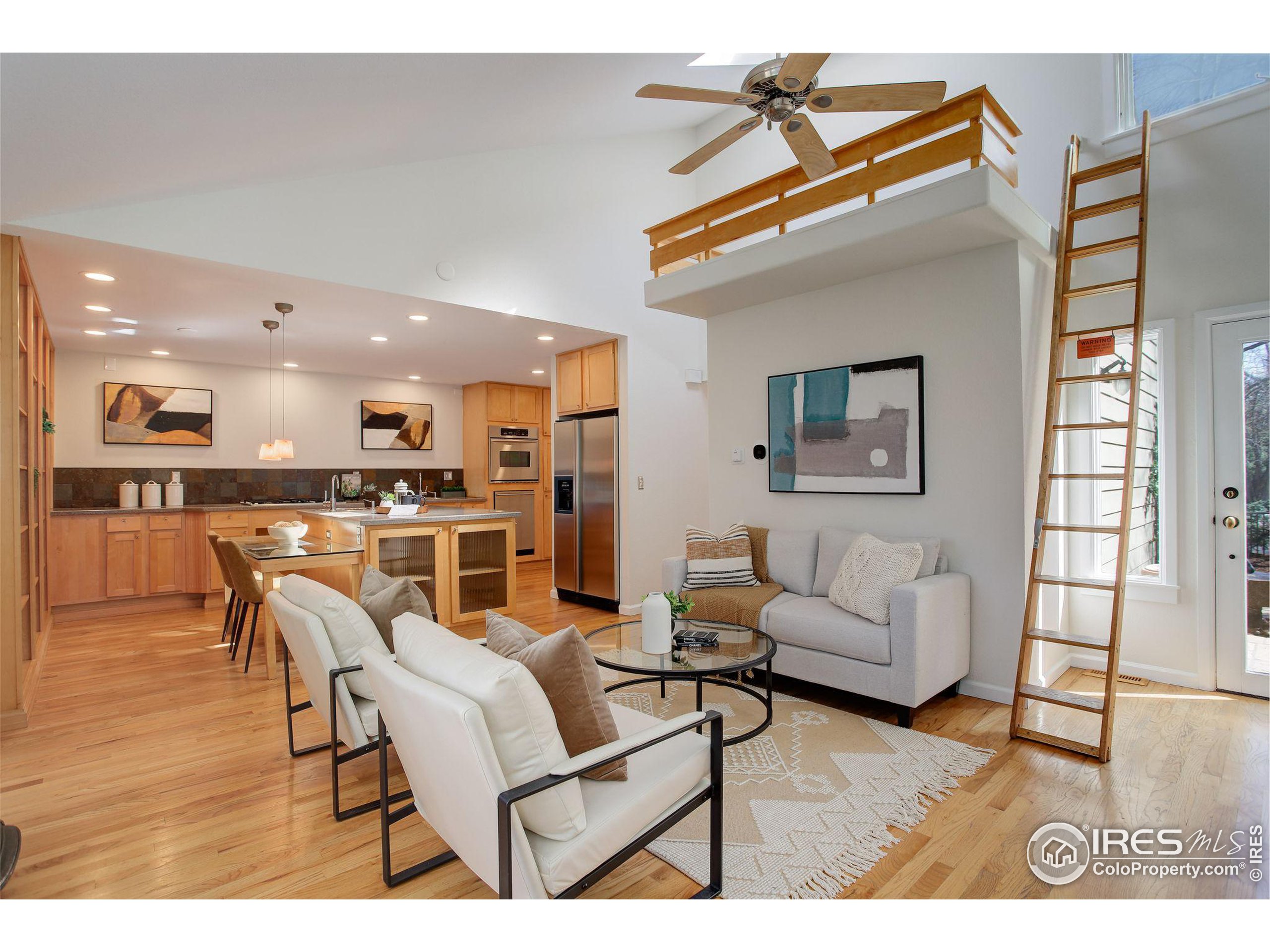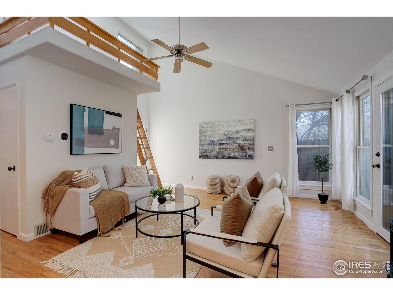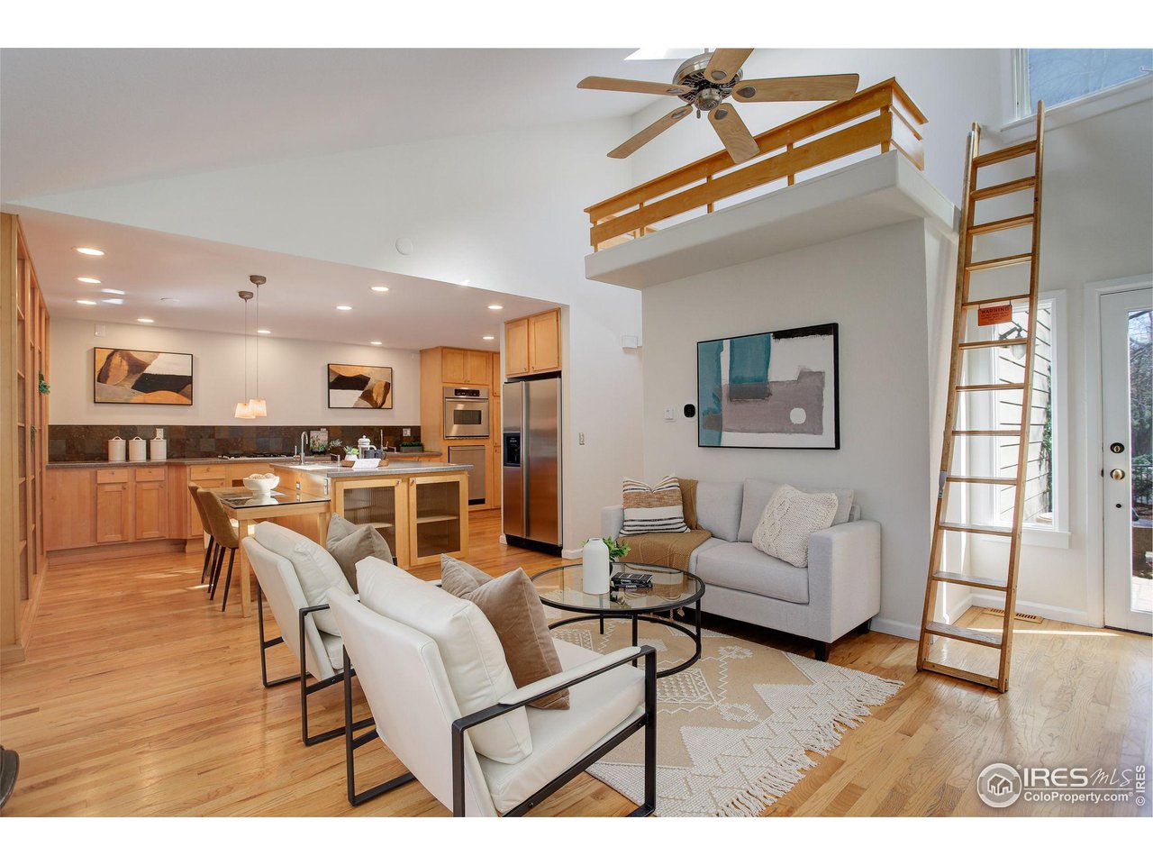 Adorable, move-in ready, single-family home, nestled into N Boulder. Step through the garden gate where you are welcomed into a cozy patio with mature landscaping that is perfect for entertaining. Inside, you'll enjoy the inviting open layout with an updated kitchen featuring an oversized island, beautiful built-ins, and plenty of cabinet and counter space. Open living room and entertaining area offers vaulted ceiling, lots of light and a bonus cozy reading loft/nook. Home features 2 private bedrooms on each side of the home, each boasting its own bathroom. The primary suite features a walk-in closet and access to additional patio. Second bedroom enjoys southern exposure and a 2nd fun reading loft and climbing wall. The attached 1 car garage may be used as a bonus living space, work-out, rec room, or office. Plenty of parking spots in front of the home. Walking distance to 2 parks with lots of near by trails. Fantastic N Boulder location, only minutes to shopping, restaurants and open space. Don't miss out on this delightful home in a fantastic community!