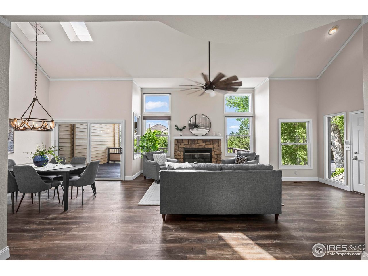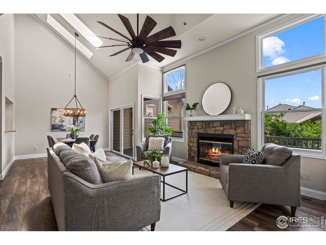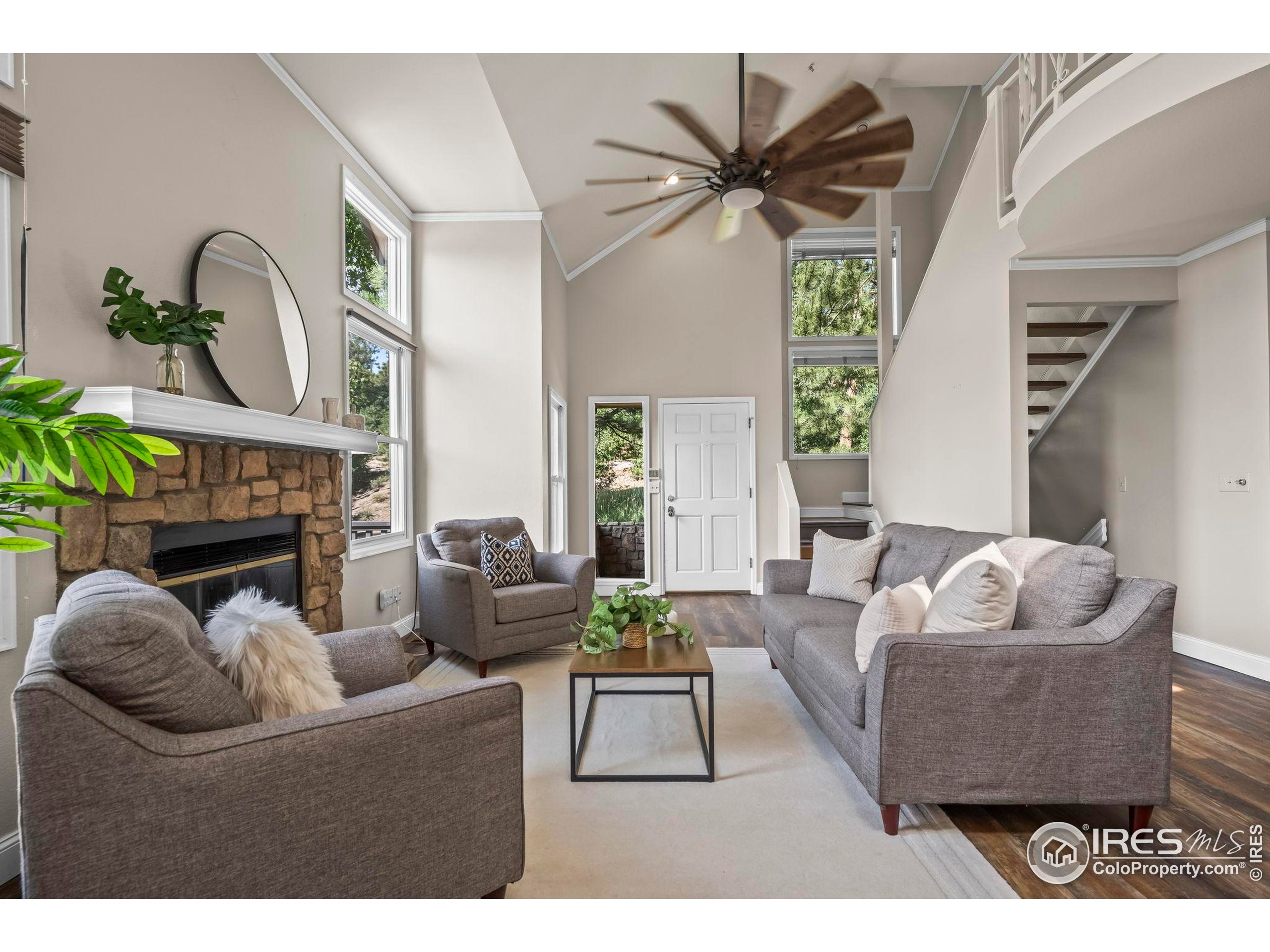 NEW PRICE! Tucked inside the gated and highly desirable Castle Pines Village, this beautifully updated condo offers a blend of comfort, style, and serenity. The open floor plan features vaulted ceilings and updated flooring throughout. A sunlit kitchen with granite counters and skylights flows into a charming breakfast nook and a dining room with a convenient serving bar. The living room-anchored by a gas fireplace-opens to a spacious deck perfect for entertaining or unwinding outdoors. A main-level bedroom offers flexible use as a guest room or home office. Upstairs, the expansive primary suite includes ample closet space, a luxurious five-piece bath, and a private balcony nestled among mature pines for added shade and tranquility. Enjoy resort-style amenities including 24/7 gated security, multiple pools (including an adults-only option), tennis and pickleball courts, a clubhouse, walking trails, scenic open space, and a picturesque pond with a waterfall. All just minutes from dining and shopping favorites like Miyo Cafe, Whole Foods, Cuba Cuba, and the Castle Rock Outlets. This peaceful retreat won't last-schedule your showing today!