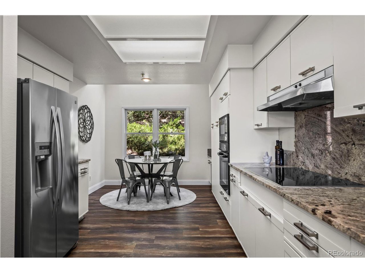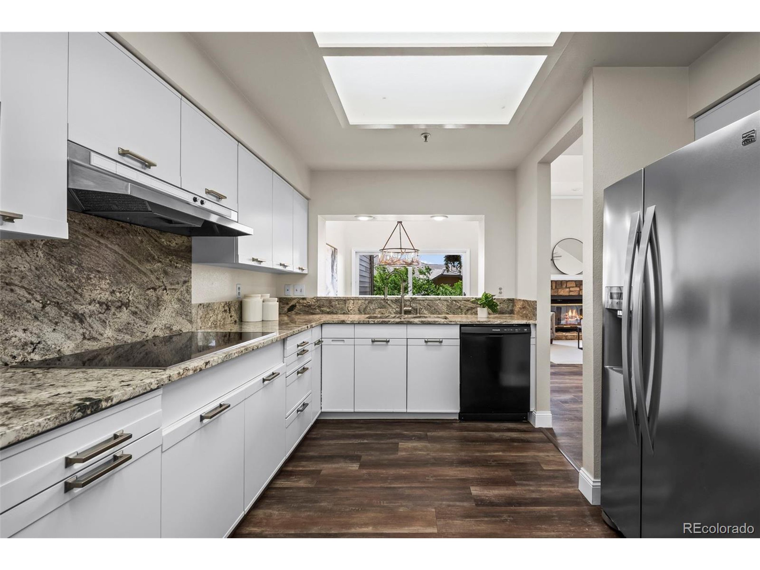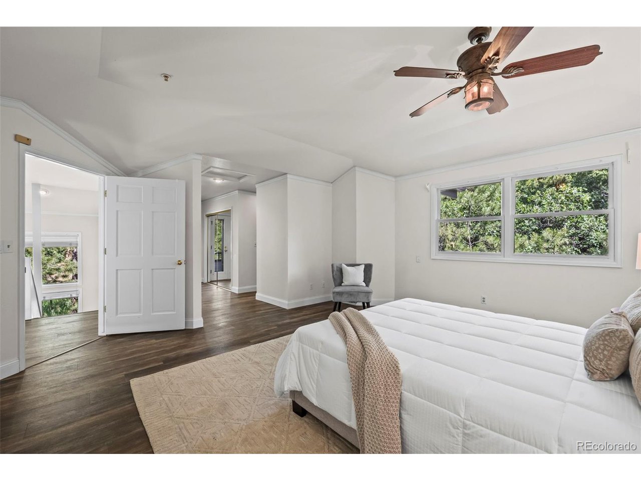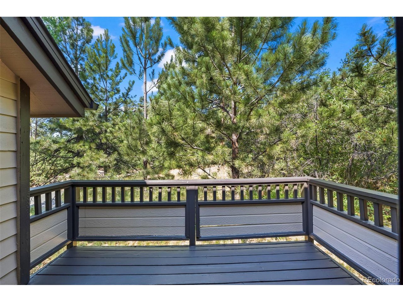 Tucked inside the gated and highly desirable Castle Pines Village, this beautifully updated condo offers a blend of comfort, style, and serenity. The open floor plan features vaulted ceilings and updated flooring throughout. A sunlit kitchen with granite counters and skylights flows into a charming breakfast nook and a dining room with a convenient serving bar. The living room-anchored by a gas fireplace-opens to a spacious deck perfect for entertaining or unwinding outdoors. A main-level bedroom offers flexible use as a guest room or home office. Upstairs, the expansive primary suite includes ample closet space, a luxurious five-piece bath, and a private balcony nestled among mature pines for added shade and tranquility. Enjoy resort-style amenities including 24/7 gated security, multiple pools (including an adults-only option), tennis and pickleball courts, a clubhouse, walking trails, scenic open space, and a picturesque pond with a waterfall. All just minutes from dining and shopping favorites like Miyo Cafe, Whole Foods, Cuba Cuba, and the Castle Rock Outlets. This peaceful retreat won't last-schedule your showing today!