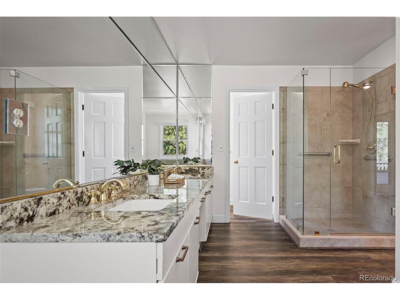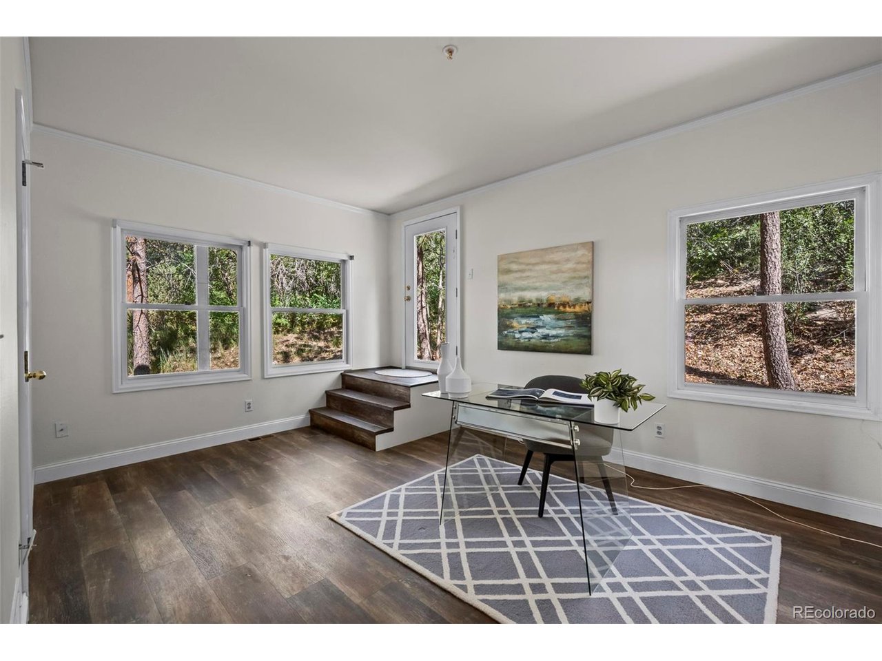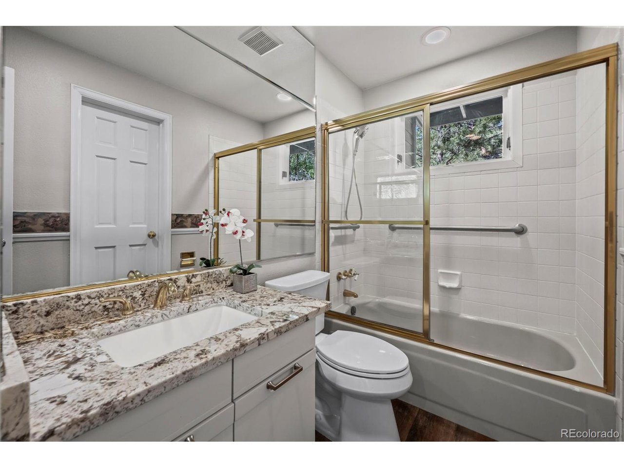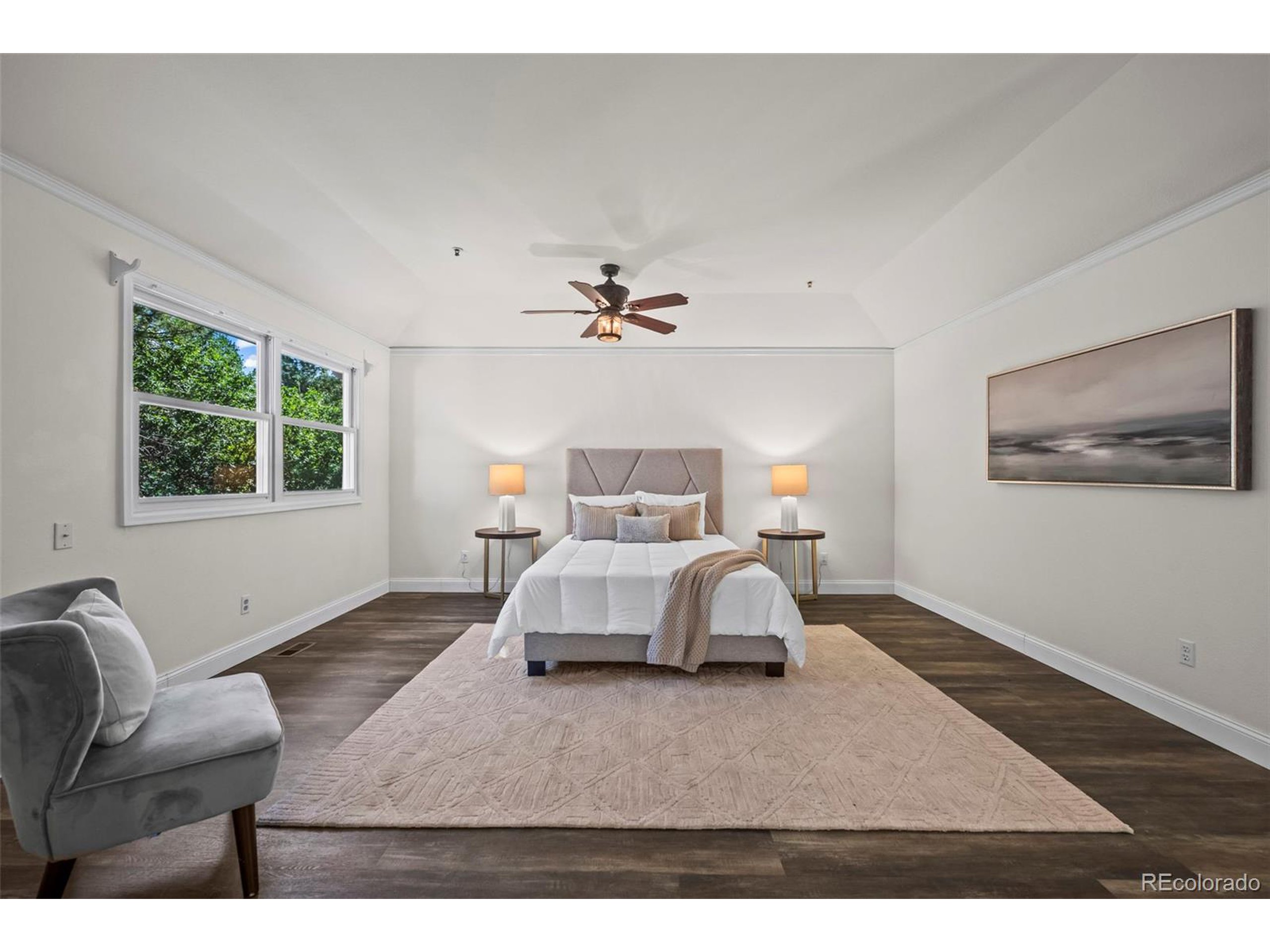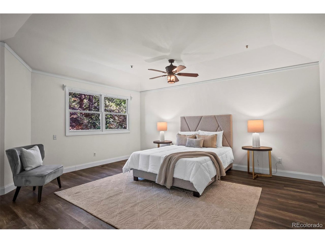 Tucked inside the gated and highly desirable Castle Pines Village, this beautifully updated condo offers a blend of comfort, style, and serenity. The open floor plan features vaulted ceilings and updated flooring throughout. A sunlit kitchen with granite counters and skylights flows into a charming breakfast nook and a dining room with a convenient serving bar. The living room-anchored by a gas fireplace-opens to a spacious deck perfect for entertaining or unwinding outdoors. A main-level bedroom offers flexible use as a guest room or home office. Upstairs, the expansive primary suite includes ample closet space, a luxurious five-piece bath, and a private balcony nestled among mature pines for added shade and tranquility. Enjoy resort-style amenities including 24/7 gated security, multiple pools (including an adults-only option), tennis and pickleball courts, a clubhouse, walking trails, scenic open space, and a picturesque pond with a waterfall. All just minutes from dining and shopping favorites like Miyo Cafe, Whole Foods, Cuba Cuba, and the Castle Rock Outlets. This peaceful retreat won't last-schedule your showing today!