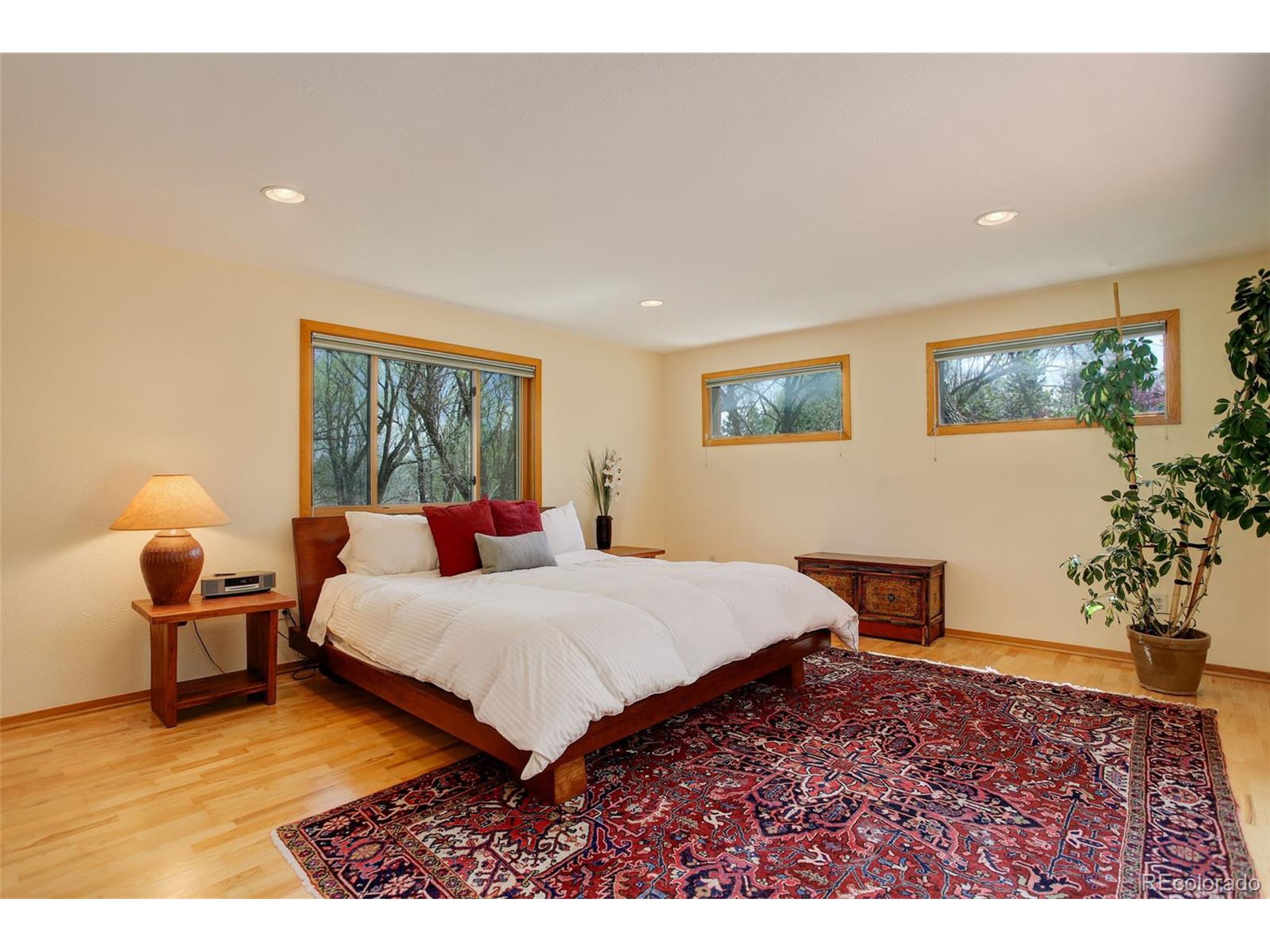 Feels like living in nature with a lots of natural light, mature landscaping and open space on 2 sides of the property, located on a quiet Cul-de-sac. An expansive deck invites you into the home where you will enjoy the open floor plan with the light-filled living room, stone fireplace, dining room and updated cozy kitchen. Bright and inviting MAIN FLOOR primary bedroom offers a serene escape, with access to 2 of the home's 4 decks where you can immerse yourself in nature's beauty. Hardwood floors throughout main floor enhance the appeal of this already inviting space. Upstairs offers 3 beds and full bath with a hallway of window and another bonus deck to enjoy the lot's beauty. Finished basement has 5th bedroom or storage galore and is just waiting for your touches. Conveniently located with LOBO trail just footsteps away and walking distance to the HOA pool, tennis courts, and park, Twin Lakes & breweries. Minutes away from Boulder and Niwot, this home offers the perfect blend of beauty, tranquility and convenience.