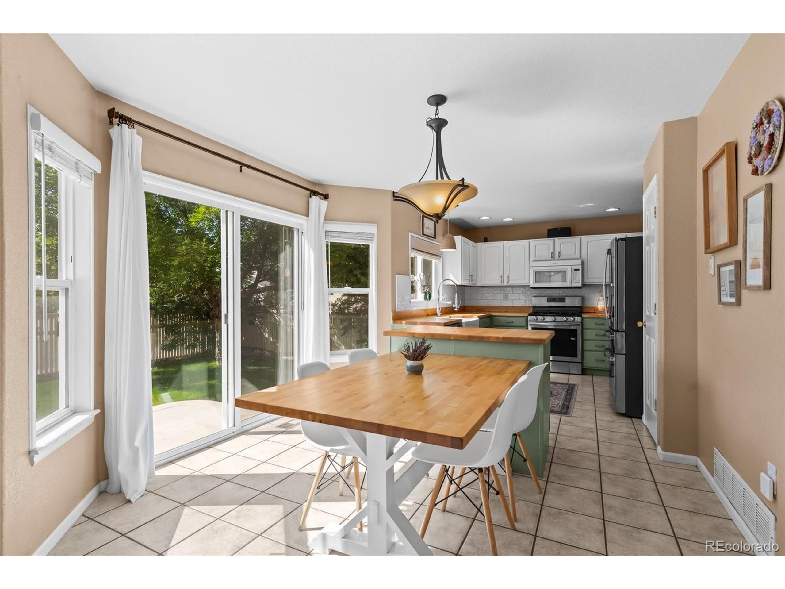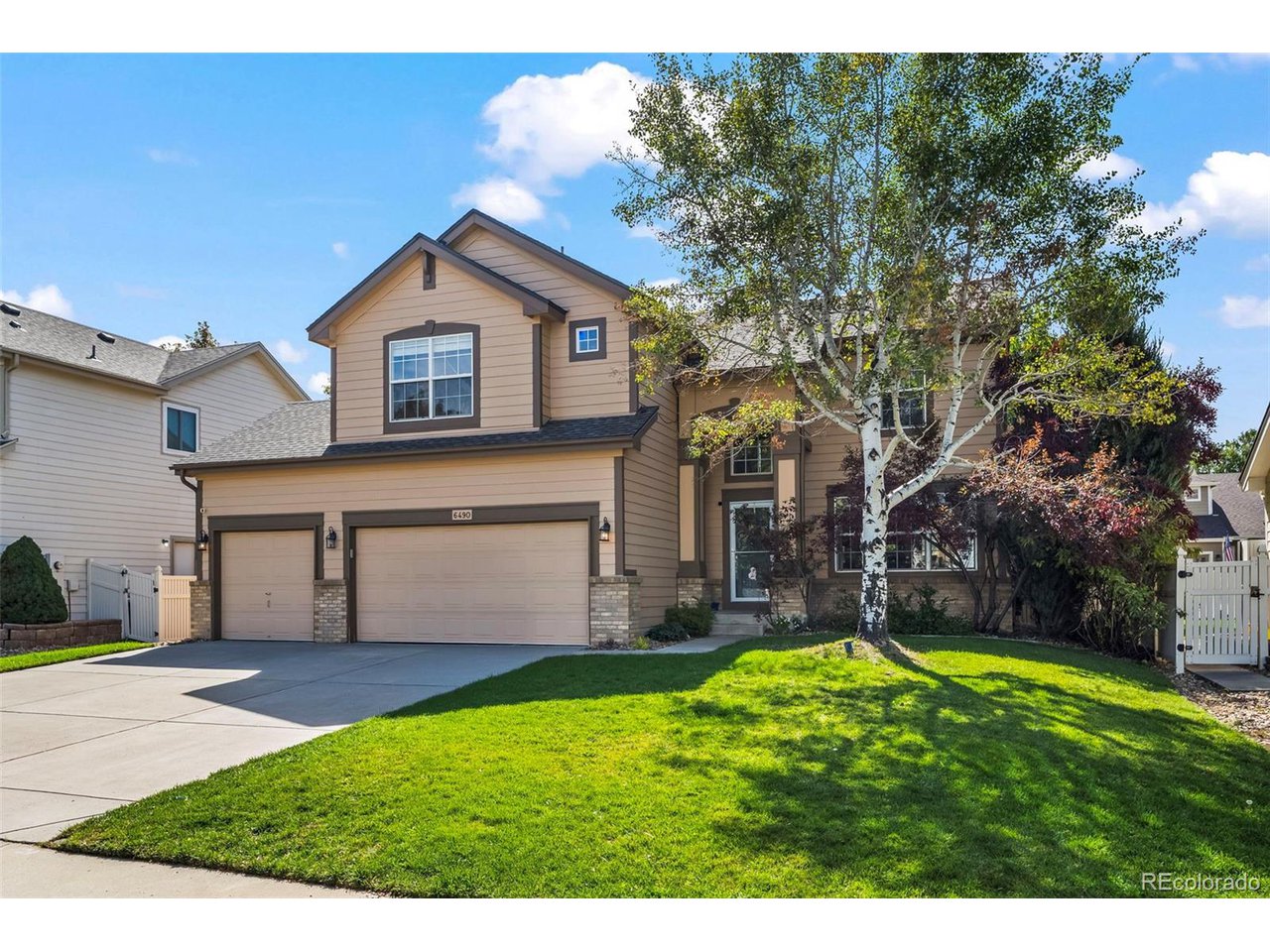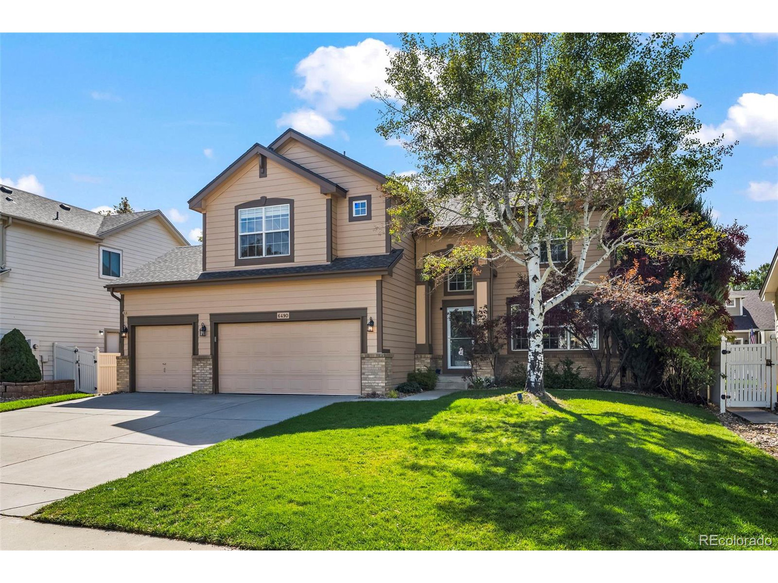 Step into this warm and inviting home showcasing a beautifully updated kitchen, thoughtfully designed for both everyday living and special gatherings. Features include a classic white farm sink, newer gas stove and dishwasher, a brand-new refrigerator, butcher block countertops, freshly painted cabinets, and a custom island with a cozy eat-in bar-ideal for casual meals or hosting friends and family.The main level offers an open-concept layout with vaulted ceilings and abundant natural light, creating a bright and airy atmosphere throughout.Upstairs, you'll find four spacious bedrooms, including a generous primary suite with French doors, a luxurious 5-piece bath with soaking tub, and a walk-in closet. The full basement provides excellent potential for additional living space w/ample storage.Recent updates include all-new interior paint and new blinds. New roof with Class 3 Shingles and exterior paint all done in 2020. Outside enjoy a fully fenced backyard and thoughtful landscaping-a serene retreat for relaxing, entertaining, or play. Whether enjoying a quiet morning coffee or hosting a summer barbecue, this outdoor space offers both beauty and privacy.An oversized three-car garage provides plenty of room for vehicles, hobbies, and Colorado adventure gear.Perfectly located just minutes from schools, parks, hiking and biking trails, disc golf courses, and libraries, this move-in-ready home truly blends comfort, convenience, and charm. Schedule your showing today!