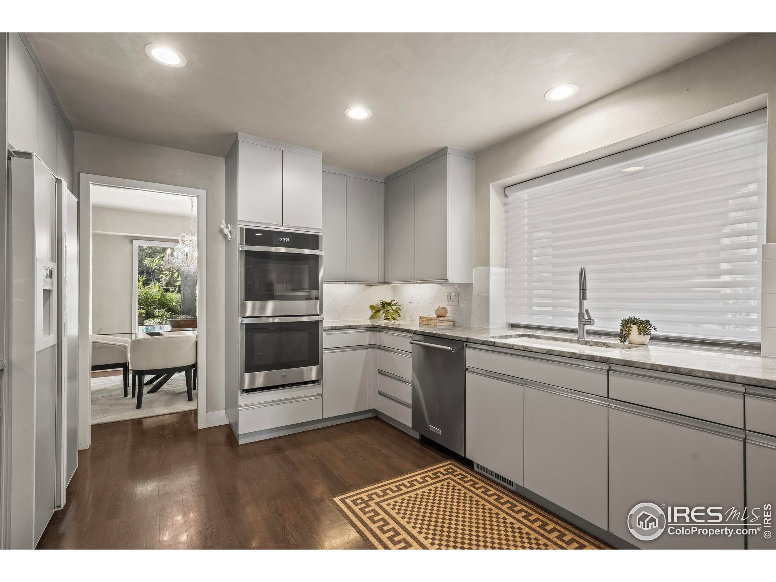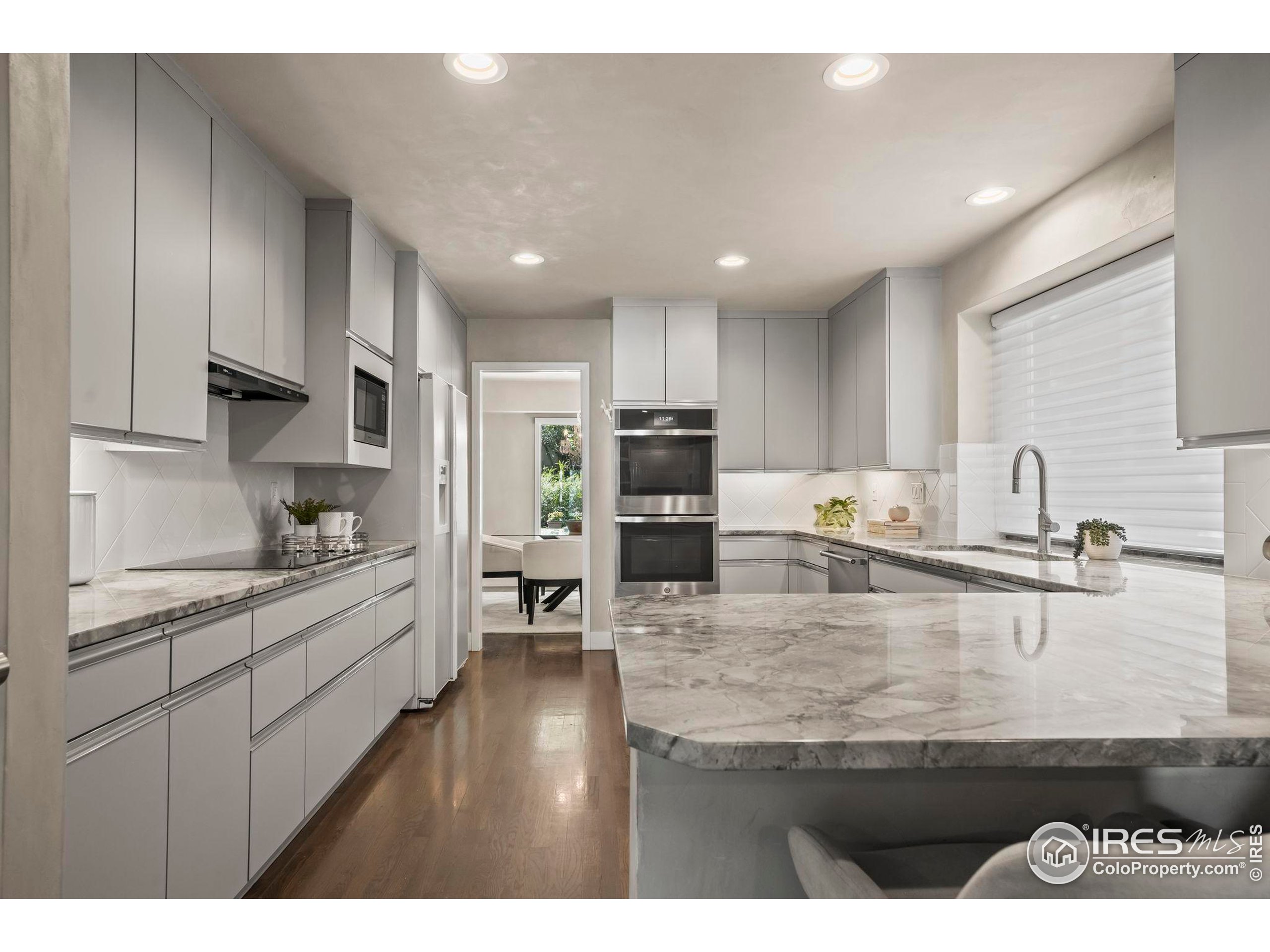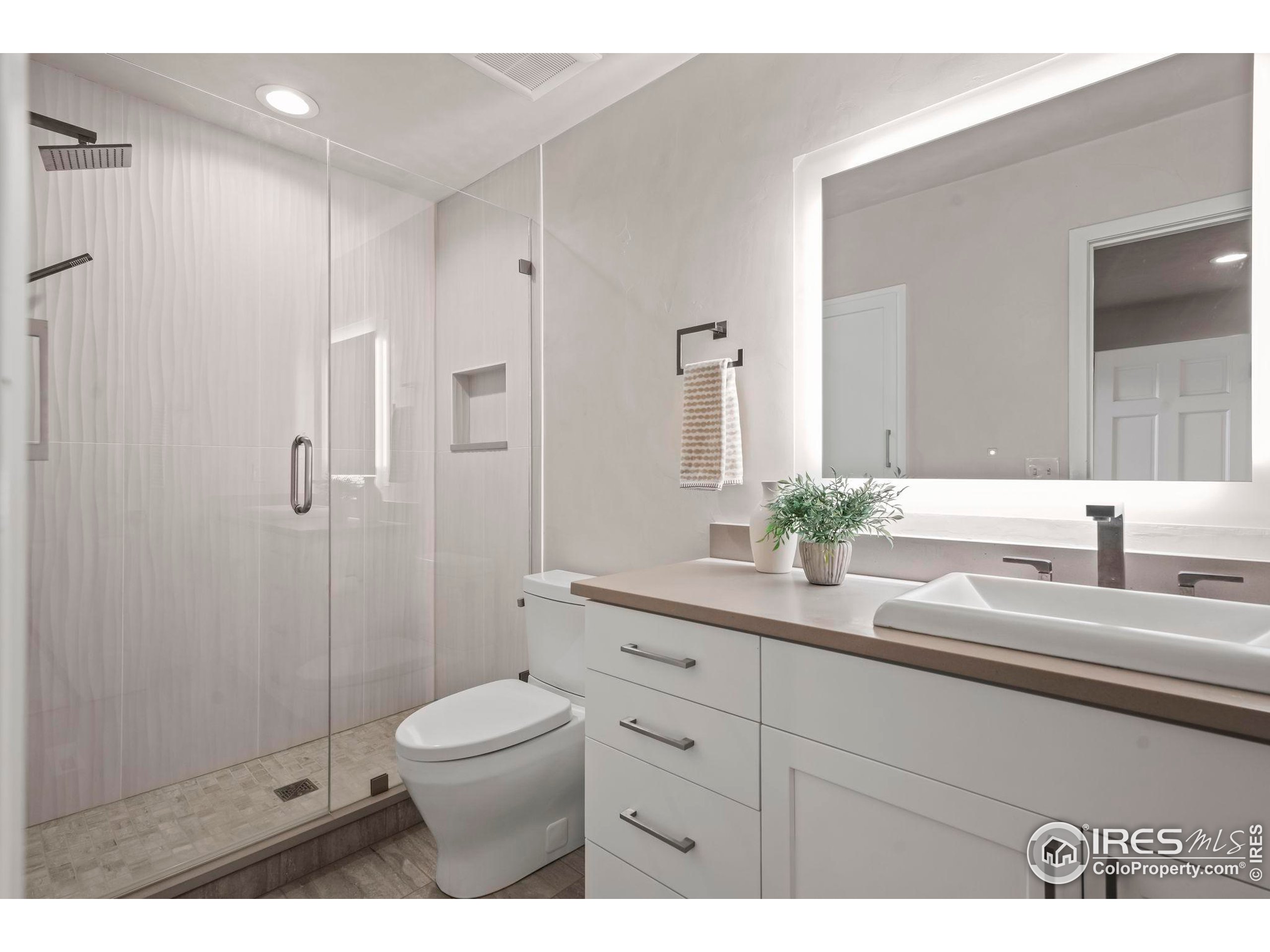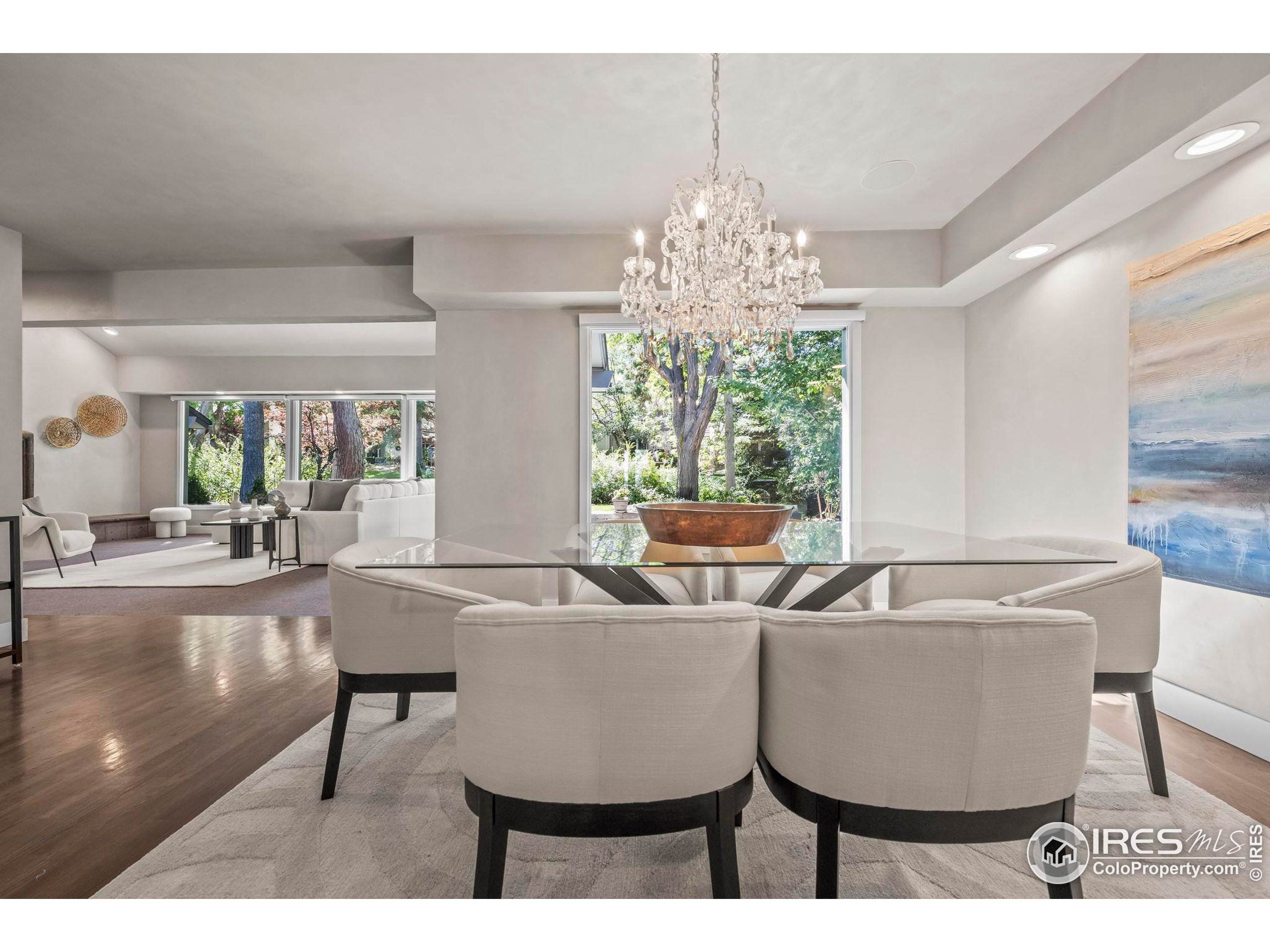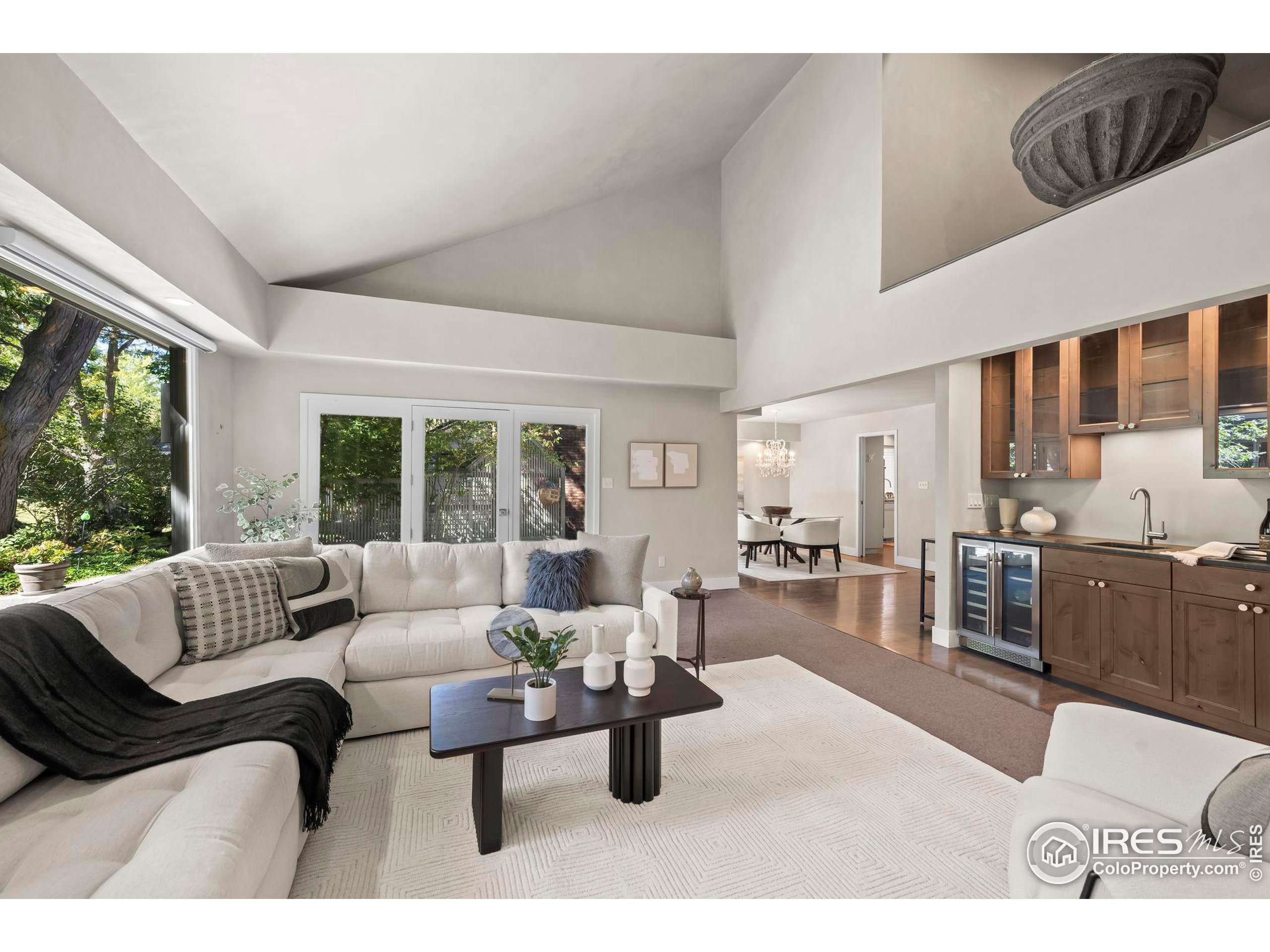 Discover the epitome of luxury & sophisticated living in this low maintenance patio home just steps from the prestigious Boulder Country Club, Golf Course, Clubhouse, Fitness Center, Pool & Pickleball. This exceptional home perfectly blends modern elegance with eco-conscious living & an unparalleled lifestyle. Enjoy the expertly designed front & back patios with tumbled cobblestone pavers offering a tranquil outdoor relaxing or entertaining space & a back patio that backs to beautifully maintained HOA greenbelts & walking trails. As you step inside you are greeted by soaring ceilings and a spacious open floor plan with southern exposure, extensive wood flooring & an updated modern kitchen that opens to a cozy den/sitting area with fireplace. The main floor offers an expansive living room with vaulted ceilings, wet bar, picturesque windows with automated Hunter Douglas blinds, a stone gas fireplace, separate dining area & main floor office with adjacent updated bath with shower. Retreat to the meticulously designed upper floor primary suite & bath that boasts custom clay plaster walls, extensive built-ins, gas fireplace & an expanded generously sized 5-piece bath, closet & laundry area with radiant heat flooring, Miele washer/dryer, sink & custom closet organizer system. The oversized 2-car garage includes space to park your Golf Cart & the flexible, unfinished basement offers great storage space or room to grow.