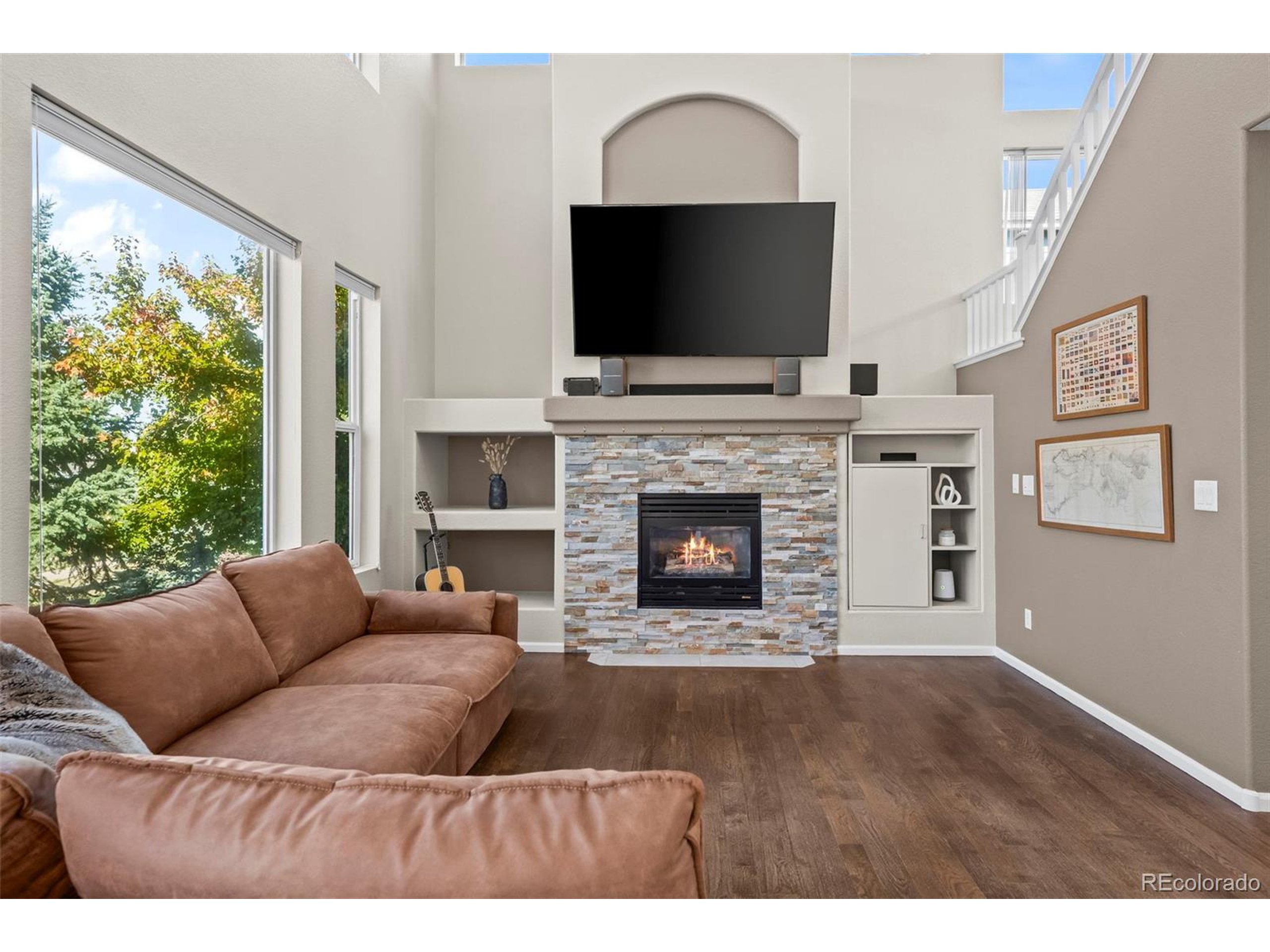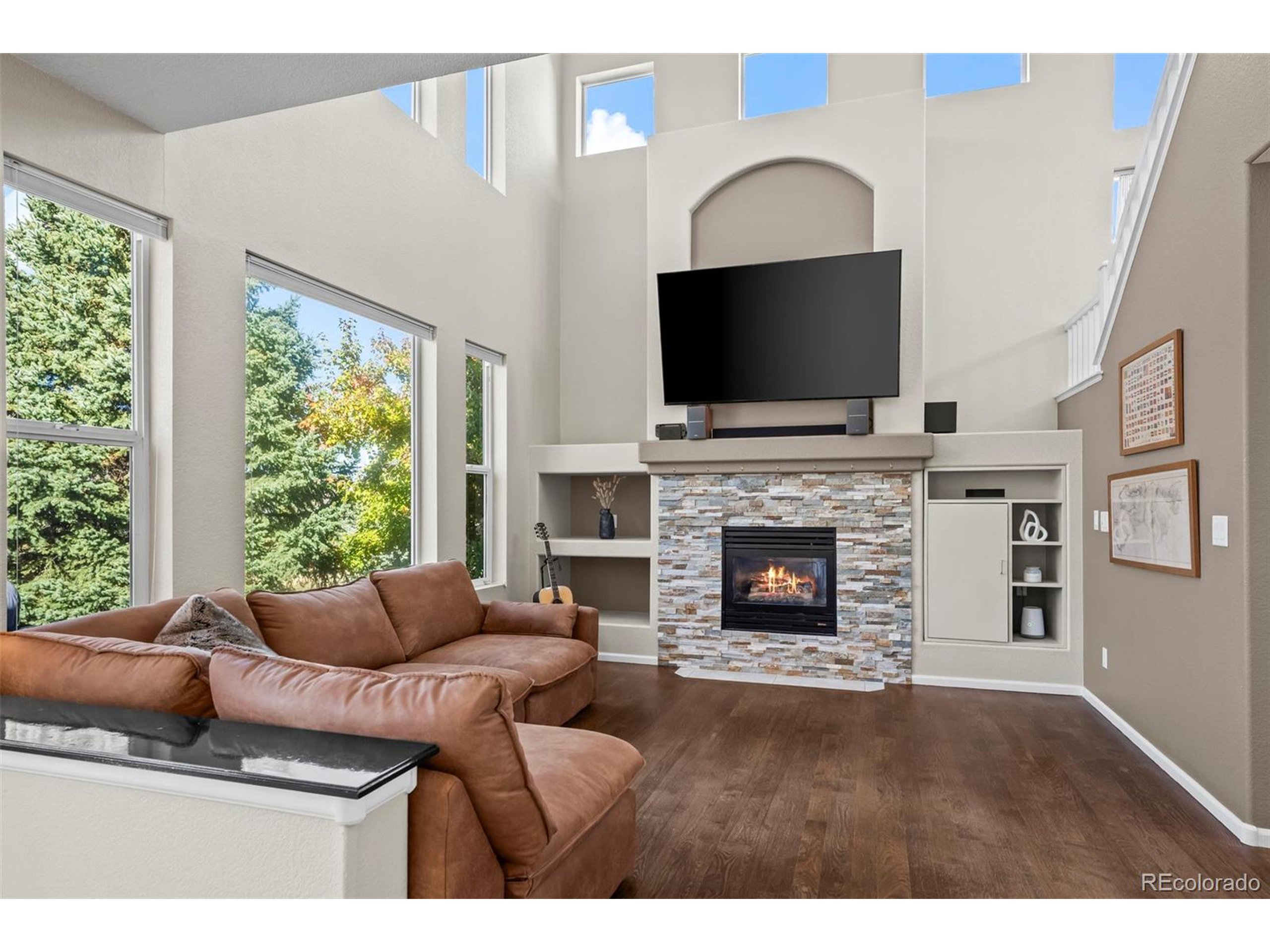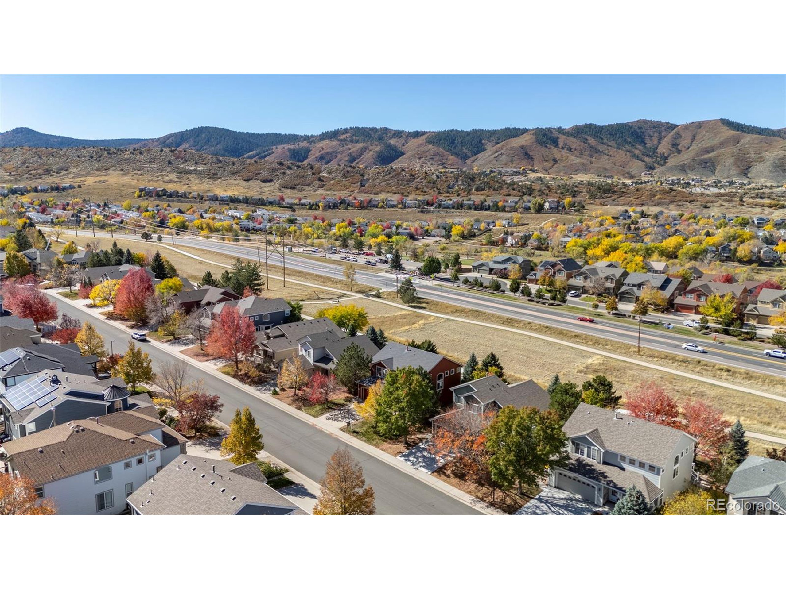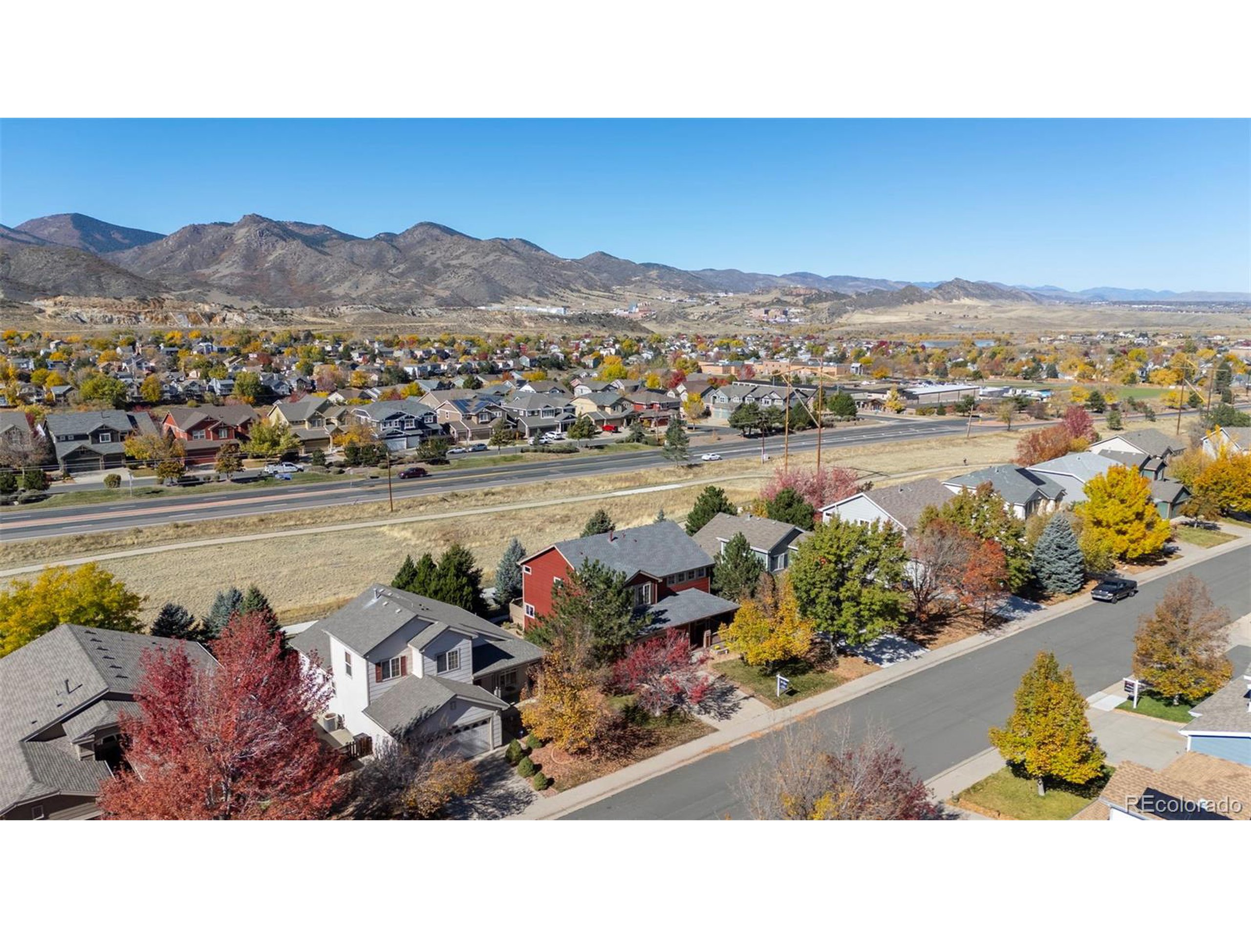 Enjoy breathtaking, unobstructed MOUNTAIN VIEWS from this beautifully updated home in Roxborough Village. Soaring vaulted ceilings, tall windows, and an open floor plan fill the home with natural light and frame the incredible backdrop of Colorado's Front Range. The main-level living room features a gas fireplace, custom built-ins, and expansive windows showcasing the mountain views, seamlessly connecting to the updated kitchen with newer stainless steel appliances, a kitchen island, and ample counter and storage space, including a large pantry. From the kitchen, step out to the spacious west-facing deck to take in the sunset over the mountains and enjoy true indoor/outdoor living. The front room-currently used as an office-offers flexible space and would make an ideal formal dining room. The main level also includes a powder bath, a large laundry room, and an attached two-car garage. Upstairs, the primary suite captures stunning mountain views and features a en suite bath and large walk-in closet. Two additional bedrooms and a full bath complete the upper level. Ideally located near open space and scenic trails, including Crystal Lake, Roxborough State Park, and the Arrowhead Golf Course, this home offers the best of Colorado living. Shops, restaurants, and groceries are all within walking distance. Don't miss this opportunity to own a home with unbeatable views and an incredible lifestyle!