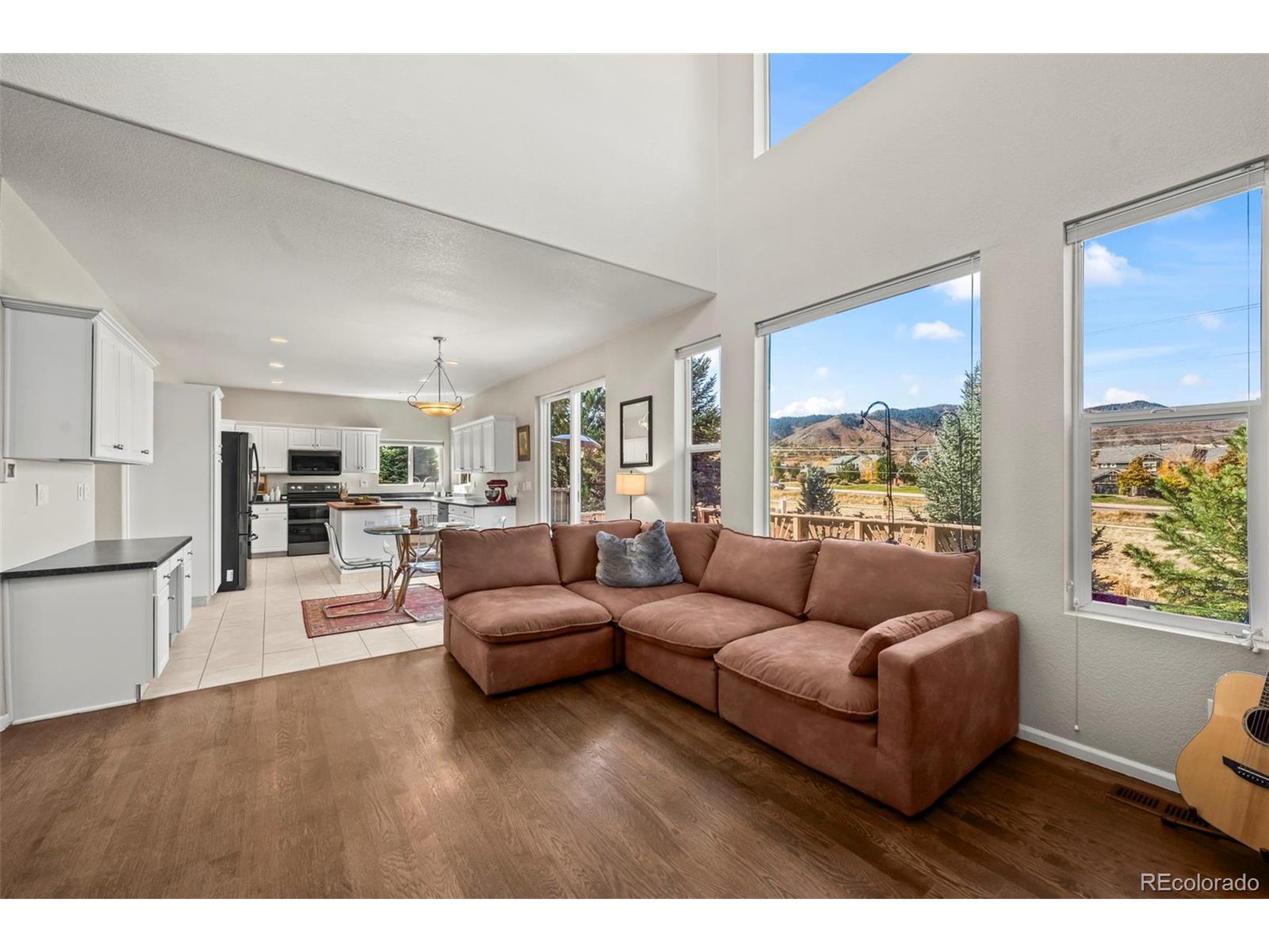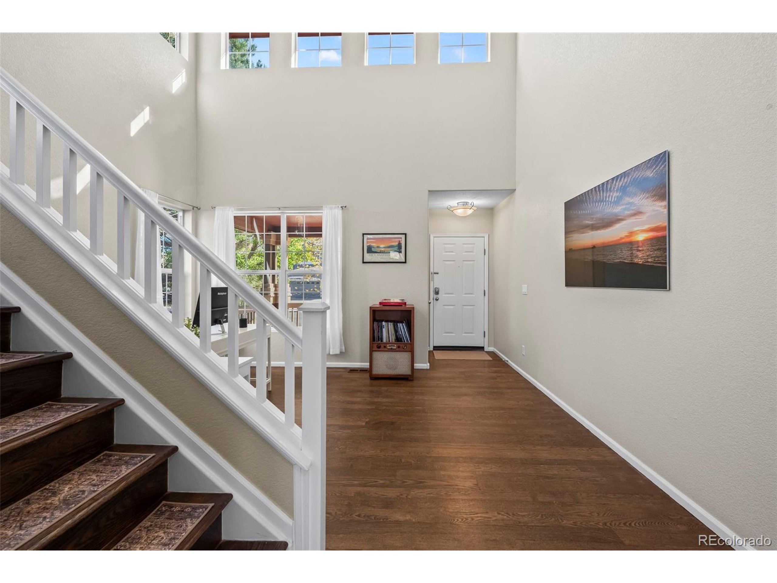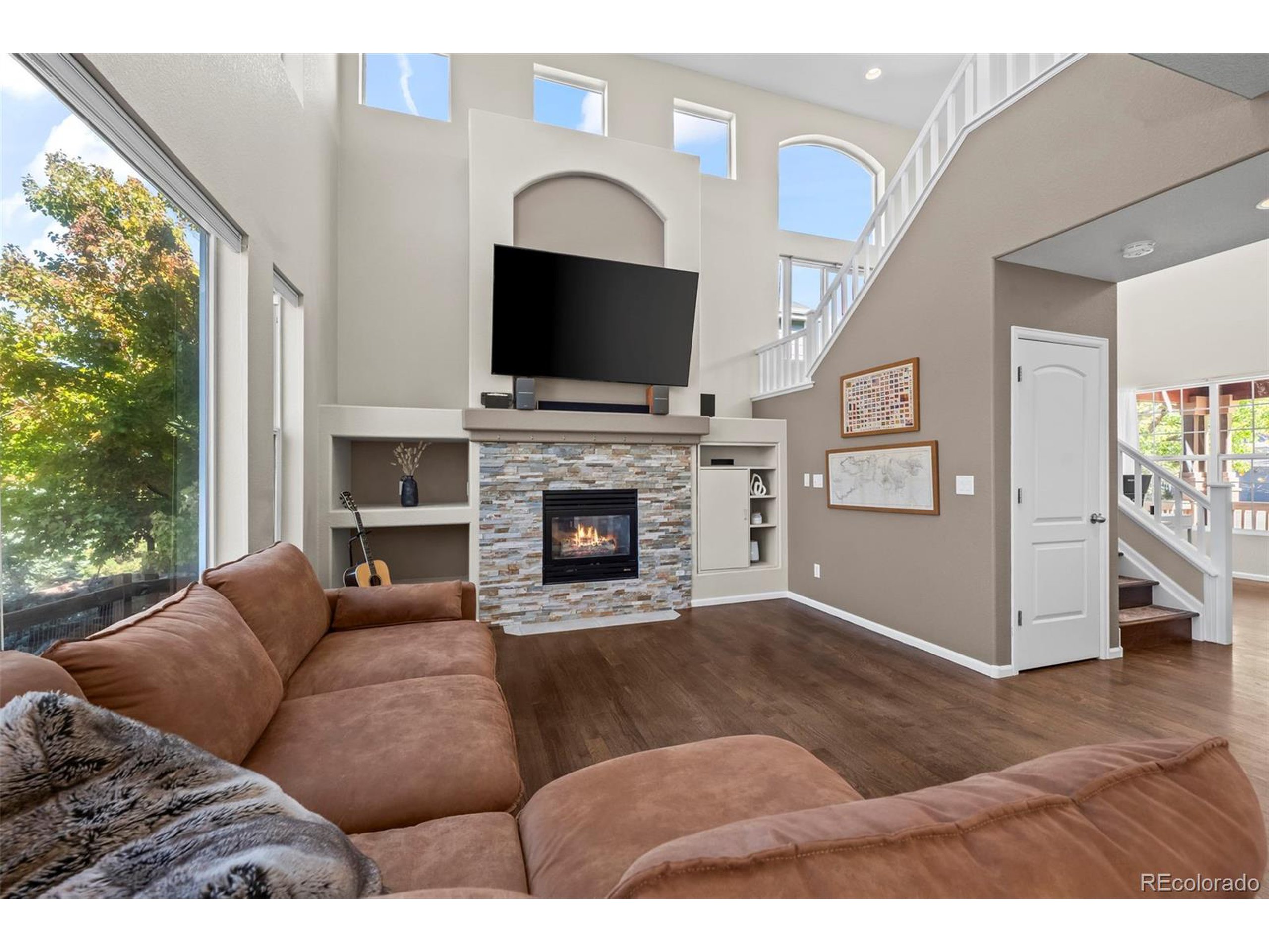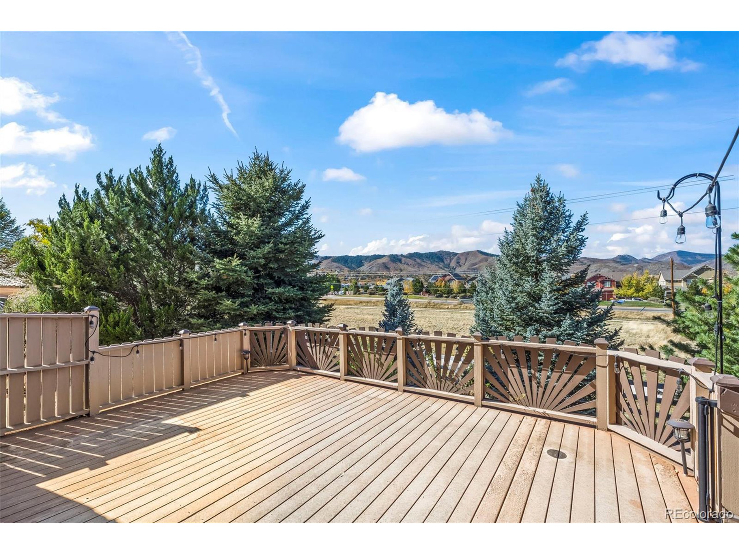 Enjoy breathtaking, unobstructed MOUNTAIN VIEWS from this beautifully updated home in Roxborough Village. Soaring vaulted ceilings, tall windows, and an open floor plan fill the home with natural light and frame the incredible backdrop of Colorado's Front Range. The main-level living room features a gas fireplace, custom built-ins, and expansive windows showcasing the mountain views, seamlessly connecting to the updated kitchen with newer stainless steel appliances, a kitchen island, and ample counter and storage space, including a large pantry. From the kitchen, step out to the spacious west-facing deck to take in the sunset over the mountains and enjoy true indoor/outdoor living. The front room-currently used as an office-offers flexible space and would make an ideal formal dining room. The main level also includes a powder bath, a large laundry room, and an attached two-car garage. Upstairs, the primary suite captures stunning mountain views and features a en suite bath and large walk-in closet. Two additional bedrooms and a full bath complete the upper level. Ideally located near open space and scenic trails, including Crystal Lake, Roxborough State Park, and the Arrowhead Golf Course, this home offers the best of Colorado living. Shops, restaurants, and groceries are all within walking distance. Don't miss this opportunity to own a home with unbeatable views and an incredible lifestyle!