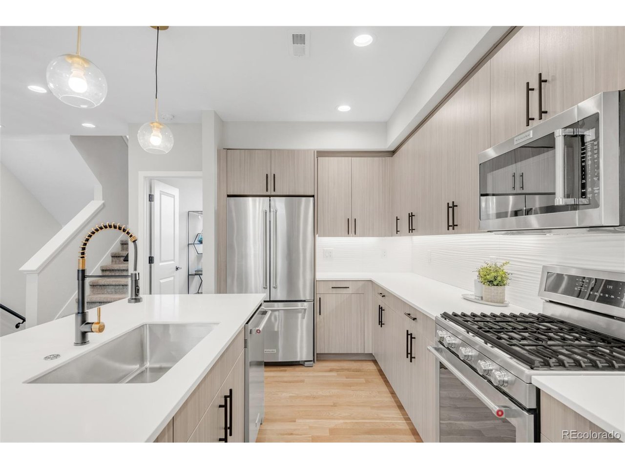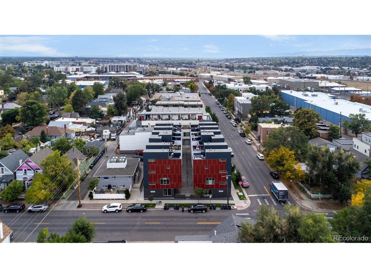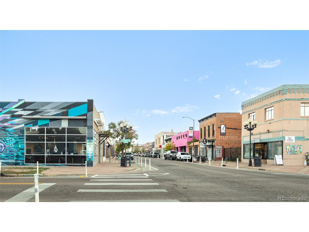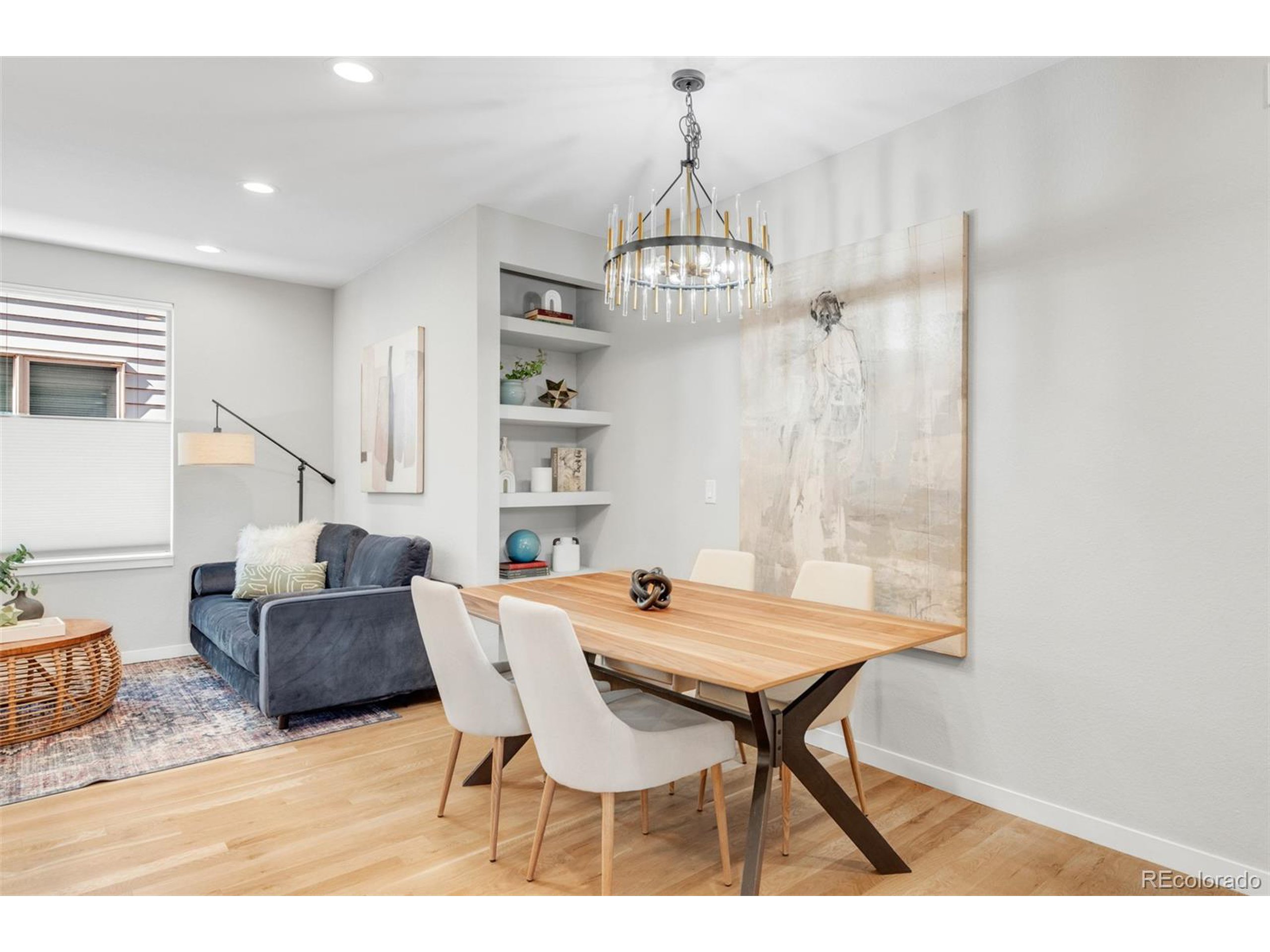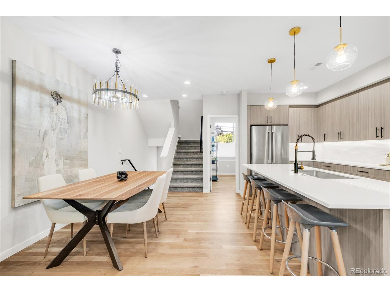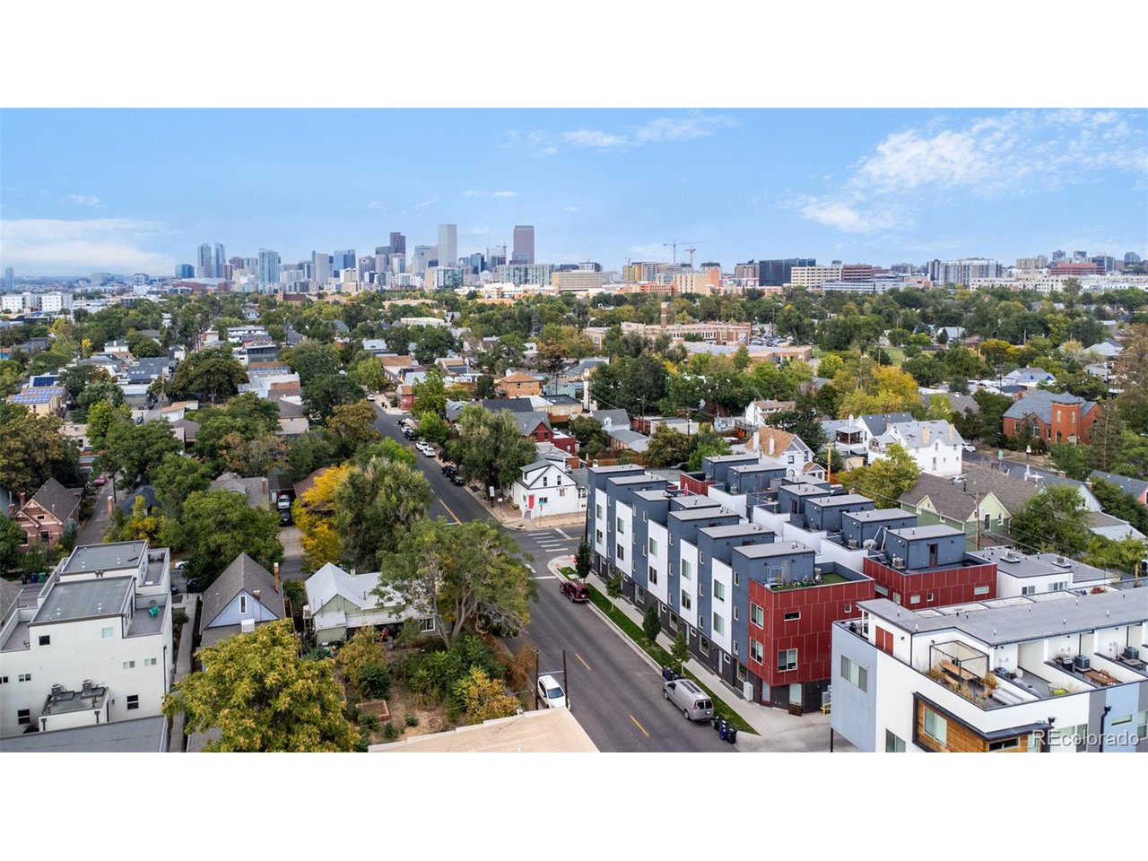 Tucked in the heart of Baker, this townhome is crowned by an impressive rooftop deck with stunning views. Recently built in 2019, the interior boasts contemporary finishes with updated lighting and hardware upgraded from the original builder-grade selections. White oak hardwood flooring flows throughout an open floorplan bathed in natural light from double-pane windows. Enjoy crafting recipes in an eat-in kitchen featuring a center island, sizable pantry, Porcelanosa tile and Krion countertops. Illuminated by an eye-catching chandelier, the dining area seamlessly extends into a living area centered by a modern fireplace. One of three bedrooms, the primary suite features a serene bath with a double vanity. Ample storage throughout includes walk-in closets and an insulated garage. Outdoor relaxation awaits on a rooftop deck boasting picturesque views. Located in the vibrant Baker neighborhood, residents enjoy easy access to trendy amenities and activities along Broadway and Santa Fe.