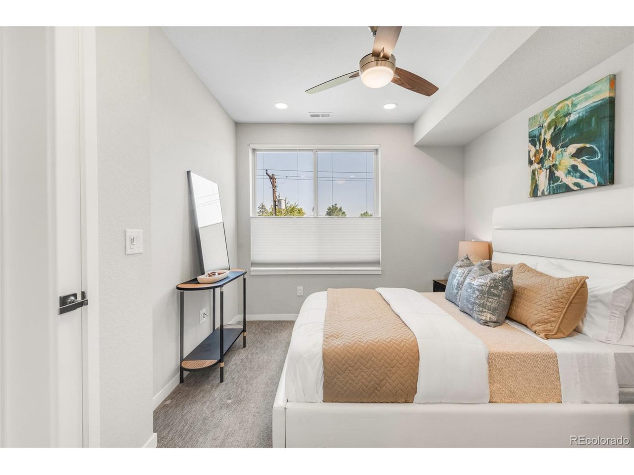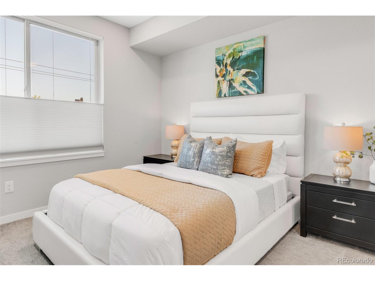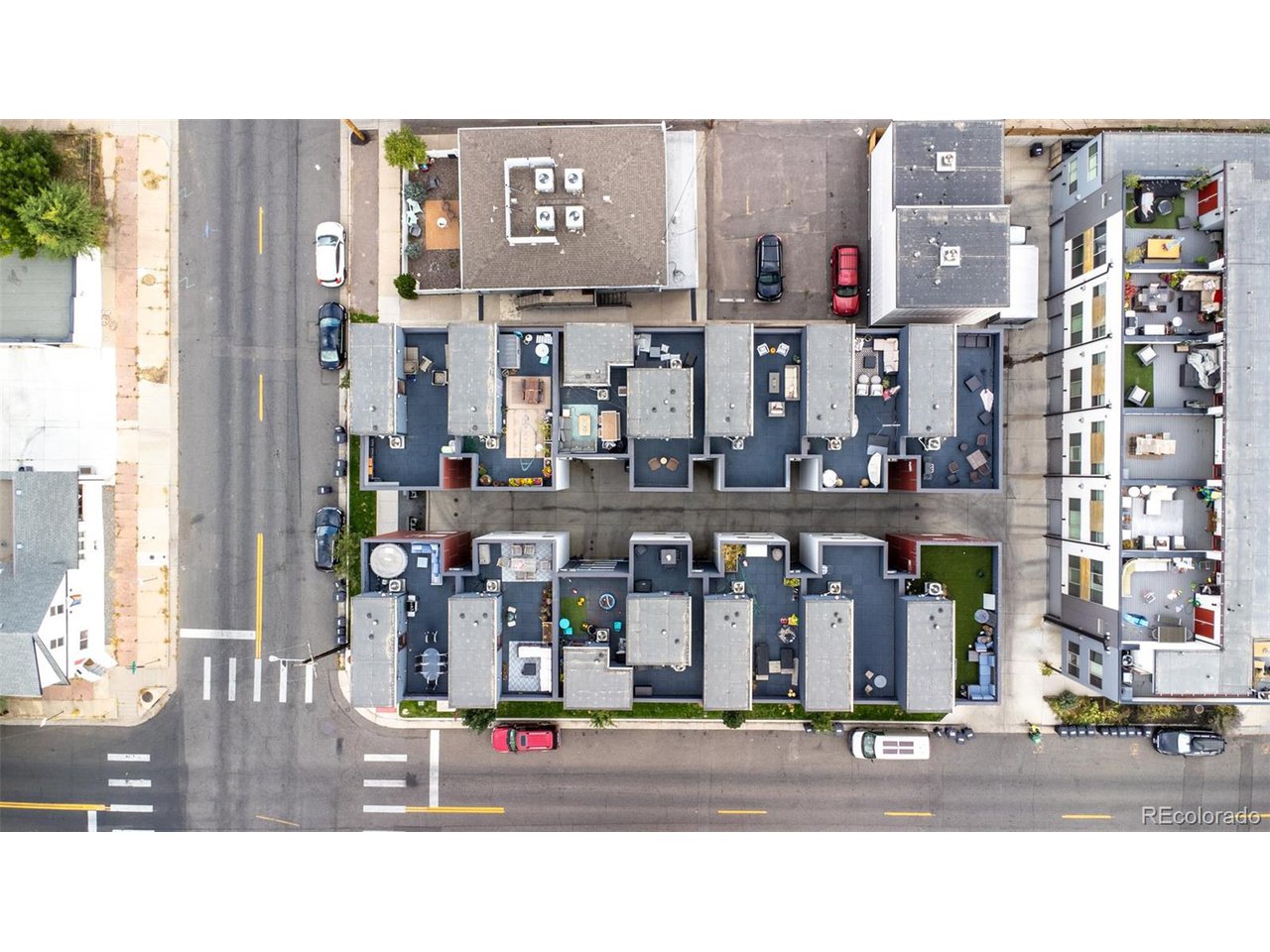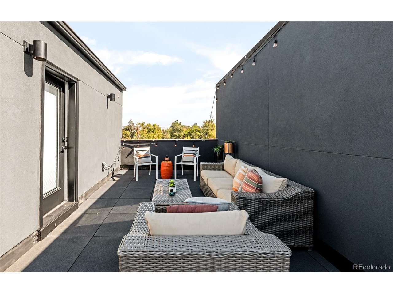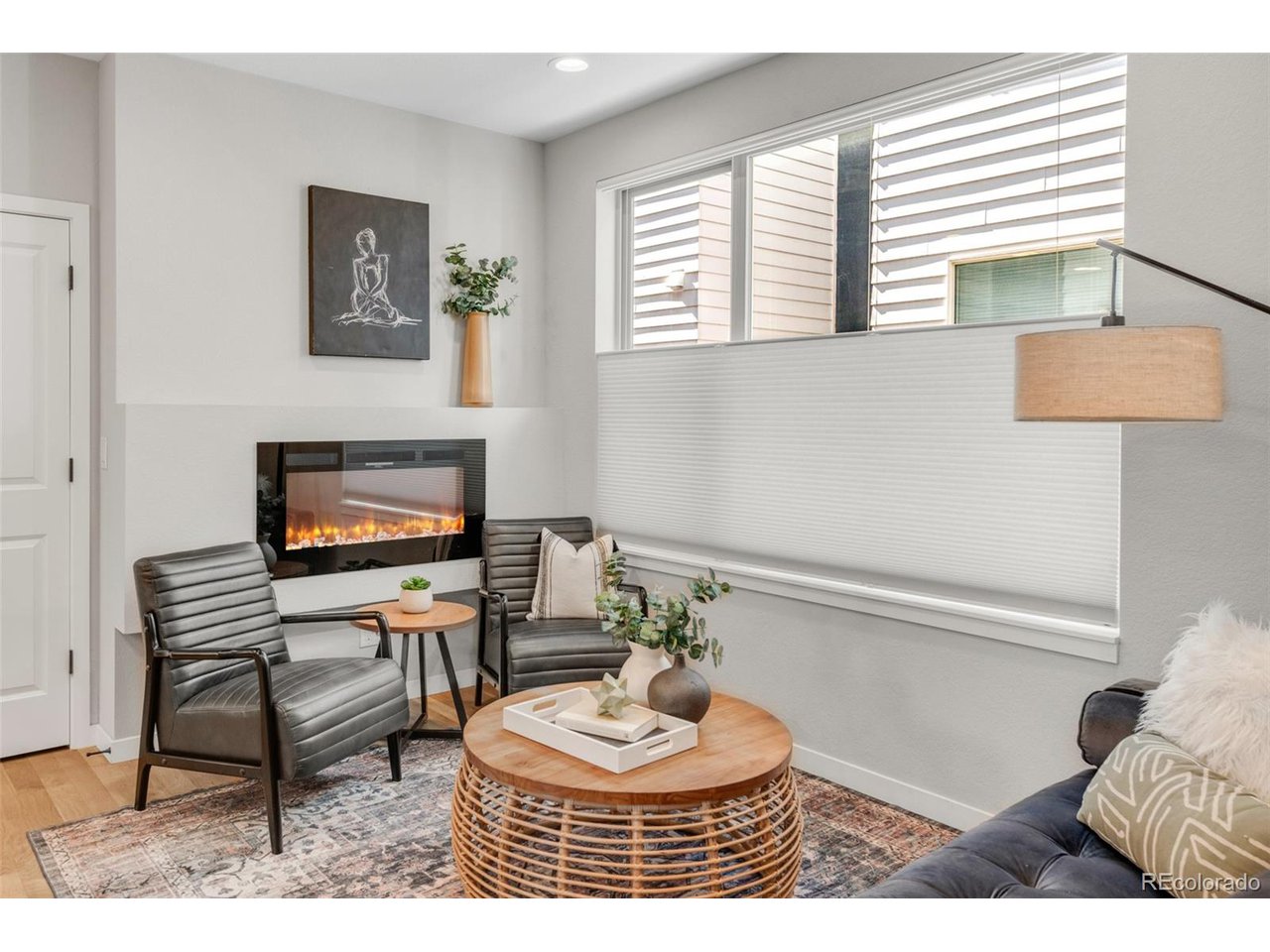 Tucked in the heart of Baker, this townhome is crowned by an impressive rooftop deck with stunning views. Recently built in 2019, the interior boasts contemporary finishes with updated lighting and hardware upgraded from the original builder-grade selections. White oak hardwood flooring flows throughout an open floorplan bathed in natural light from double-pane windows. Enjoy crafting recipes in an eat-in kitchen featuring a center island, sizable pantry, Porcelanosa tile and Krion countertops. Illuminated by an eye-catching chandelier, the dining area seamlessly extends into a living area centered by a modern fireplace. One of three bedrooms, the primary suite features a serene bath with a double vanity. Ample storage throughout includes walk-in closets and an insulated garage. Outdoor relaxation awaits on a rooftop deck boasting picturesque views. Located in the vibrant Baker neighborhood, residents enjoy easy access to trendy amenities and activities along Broadway and Santa Fe.