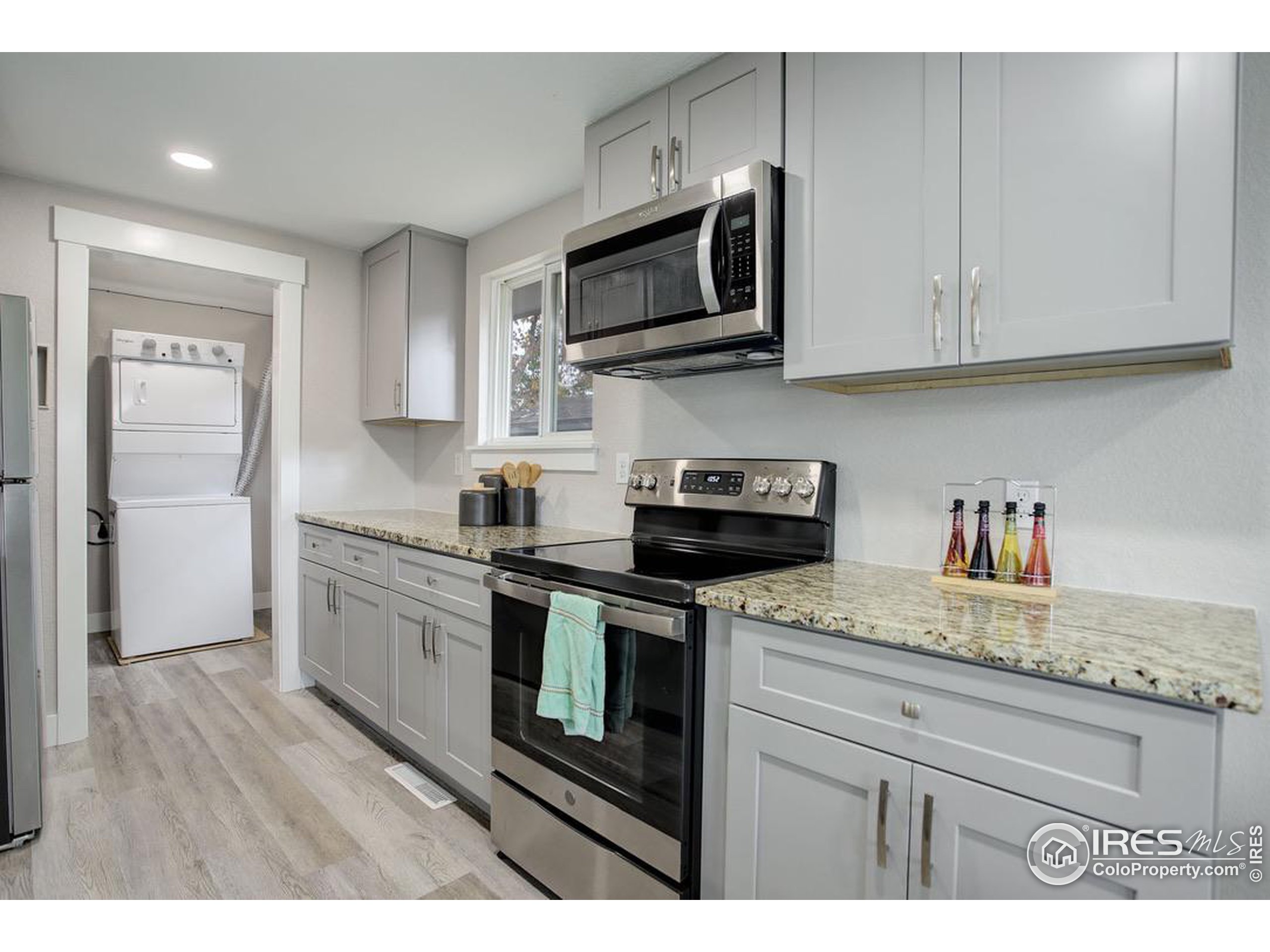 Welcome to this beautifully remodeled 3 bedroom 2 bathroom ranch home located in a great Longmont neighborhood! This charming home offers the perfect blend of modern elegance and comfortable living. As you step inside, you are greeted by an inviting open-concept floor plan, bathed in natural light and designed for both entertaining and everyday living.The updated kitchen boasts sleek stainless steel appliances, granite countertops, modern cabinets- making it a chef's delight. Adjacent to the kitchen, the dining area provides the ideal setting for family dinners and gatherings with friends.Retreat to the spacious primary suite, complete with a walk-in closet and a spa-like ensuite bathroom featuring dual vanities and oversized custom shower. Two additional bedrooms offer plenty of space for guests, or can easily be transformed into a home office, or playroom.Step outside to your private backyard, perfect for outdoor entertaining or enjoying a quiet evening under the stars. The beautifully landscaped yard features a patio area and plenty of room for gardening or play. Don't miss the detached 2-car garage with a new finished studio/ workshop, providing you with extra space for creative projects or storage. Additional perks include a freshly paved driveway (2022), new fence (2022) irrigation set up for easy maintenance(2022) , new furnace (2022), new roof (2023), New central A/C (2023). *Located in a desirable neighborhood, you'll enjoy easy access to parks, trails, and top-rated schools, as well as all the shops and restaurants of downtown Longmont. * Don't miss your chance to make this beautiful house your home. Schedule a showing today!